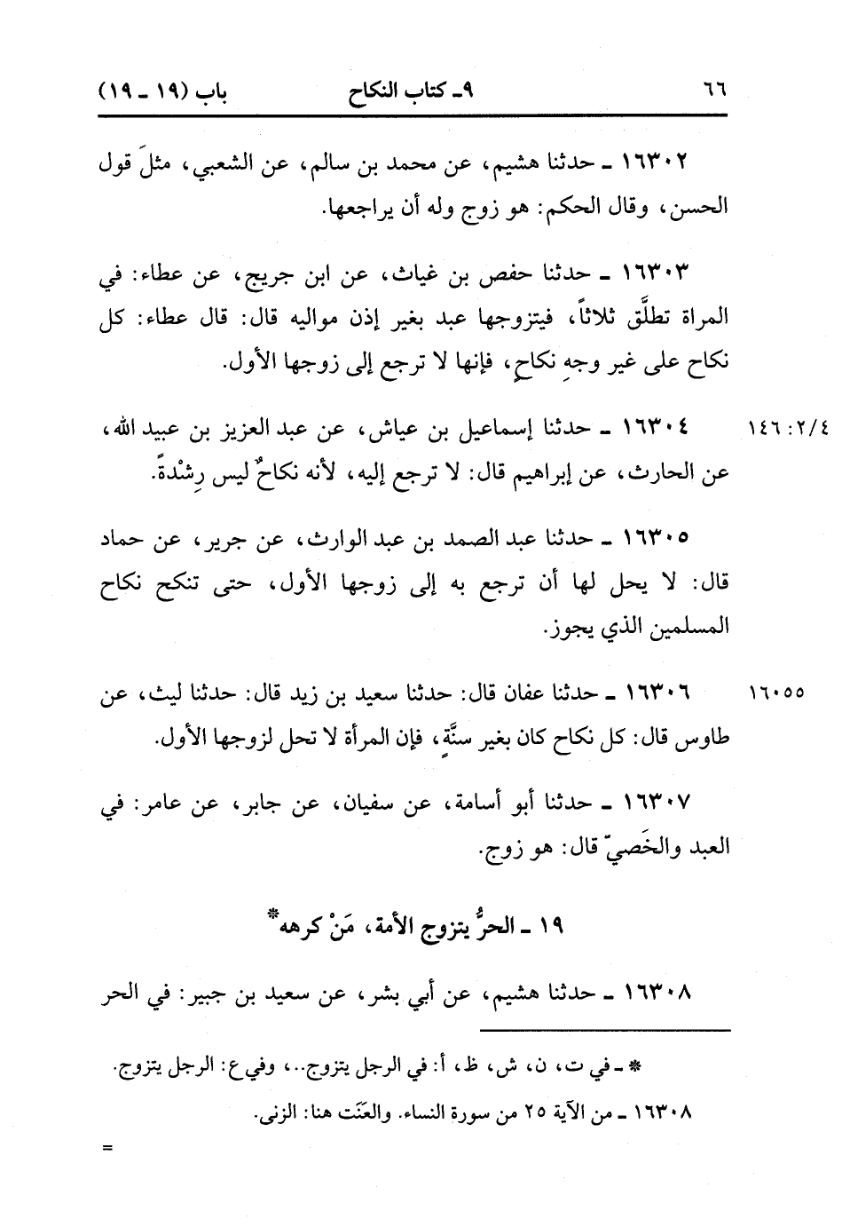 16308- حَدَّثَنَا هُشَيْمٌ , عَنْ أَبِي بِشْرٍ , عَنْ سَعِيدِ بْنِ جُبَيْرٍ فِي الْحُرِّ يَتَزَوَّجُ الأَمَةَ قَالَ : مَا ازْلَحَفَّ , عَنِ الزِّنَا إلاَّ قَلِيلاً لِقَوْلِهِ : {وَأَنْ تَصْبِرُوا خَيْرٌ لَكُمْ} قَالَ : يَقُول , عَنْ نِكَاحِ الأَمَةِ. (4/146:2).