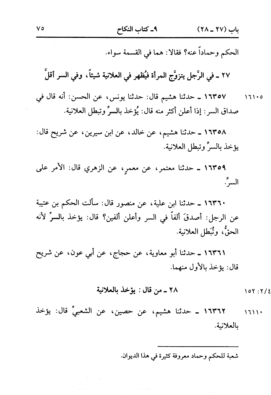 16362- حدَّثَنَا هُشَيْمٌ , عَنْ حُصَيْنٍ , عَنِ الشَّعْبِيِّ قَالَ : يُؤْخَذُ بِالْعَلاَنِيَةِ. (4/152:2).