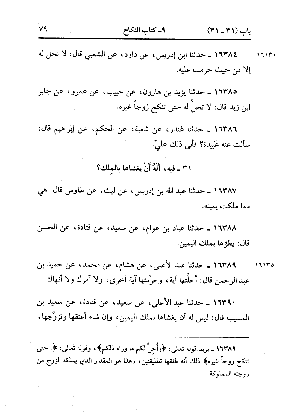 31- فيه : أَلَهُ أَنْ يَغْشَاهَا بِالْمِلْكِ ؟.