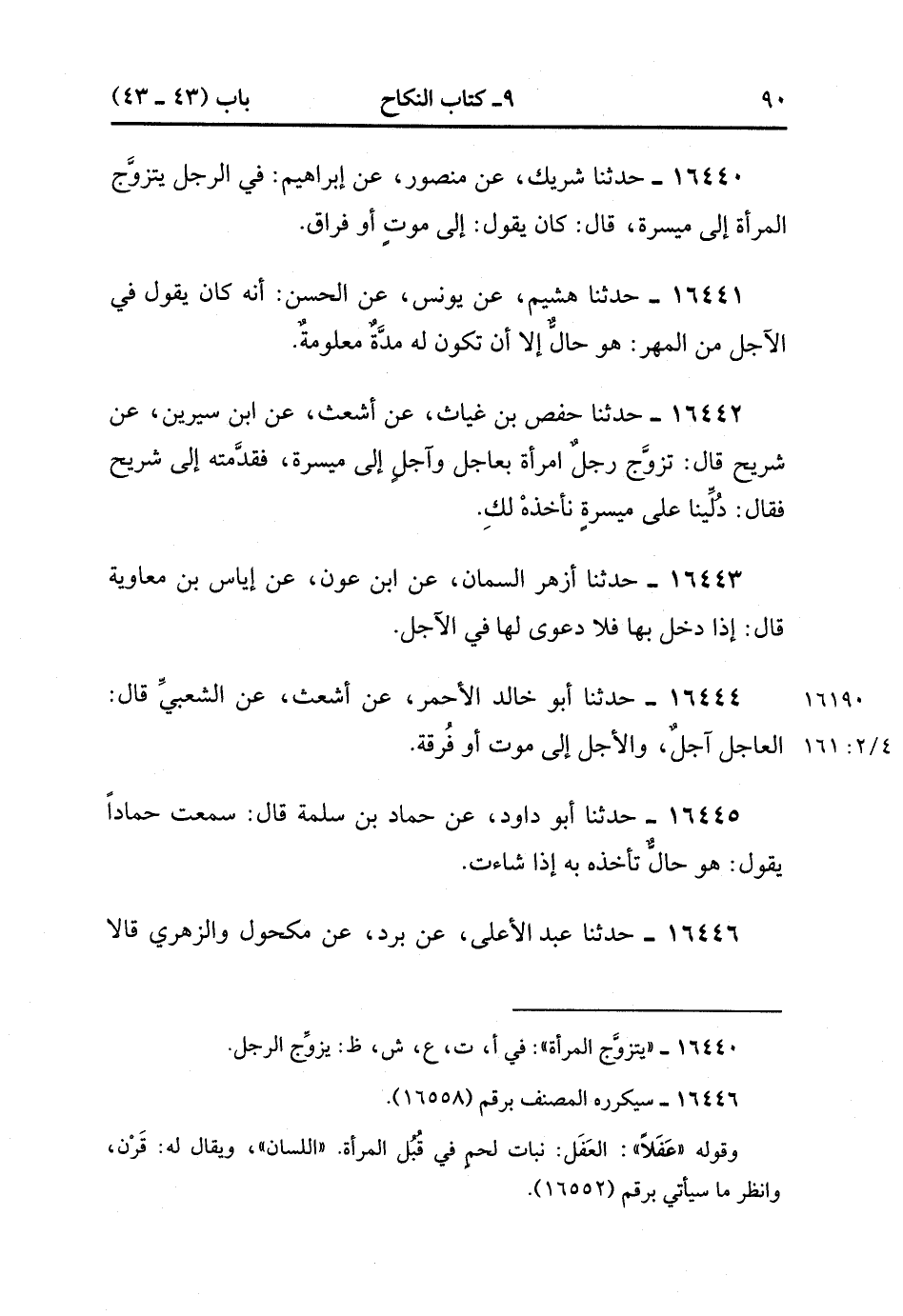 16440- حَدَّثَنَا شَرِيكٌ , عَنْ مَنْصُورٍ , عَنْ إبْرَاهِيمَ فِي الرَّجُلِ يَتَزّوَّجُ الْمَرْأَةَ إلَى مَيْسَرَةٍ ، قَالَ : كَانَ يَقُولُ : إلَى مَوْتٍ ، أَوْ فِرَاقٍ.