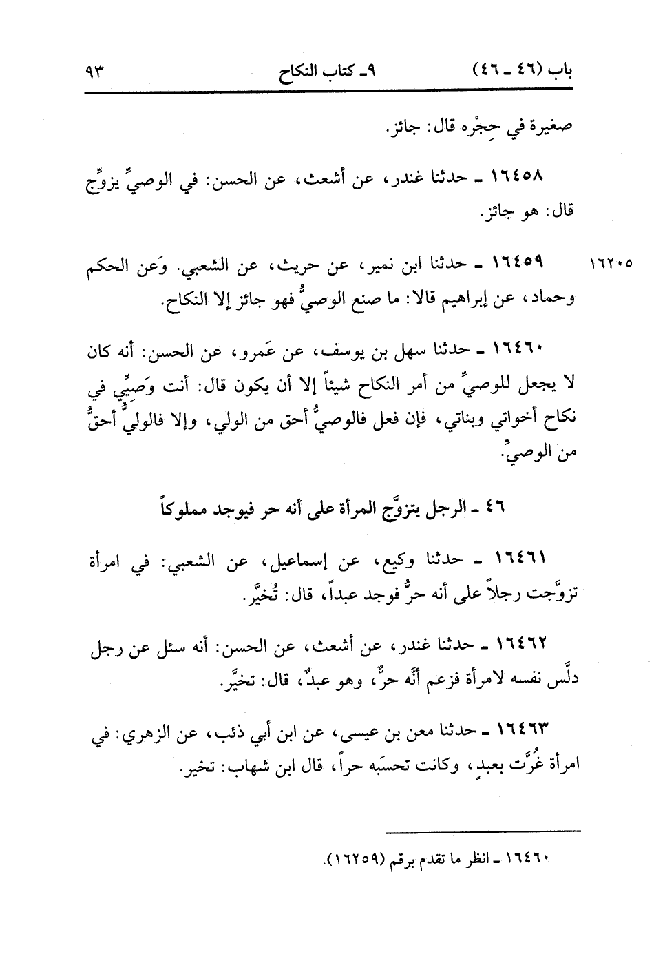 16458- حَدَّثَنَا غُنْدَرٌ , عَنْ أَشْعَثَ , عَنِ الْحَسَنِ ؛ فِي الْوَصِيِّ يُزَوِّجُ قَالَ : هُوَ جَائِزٌ.