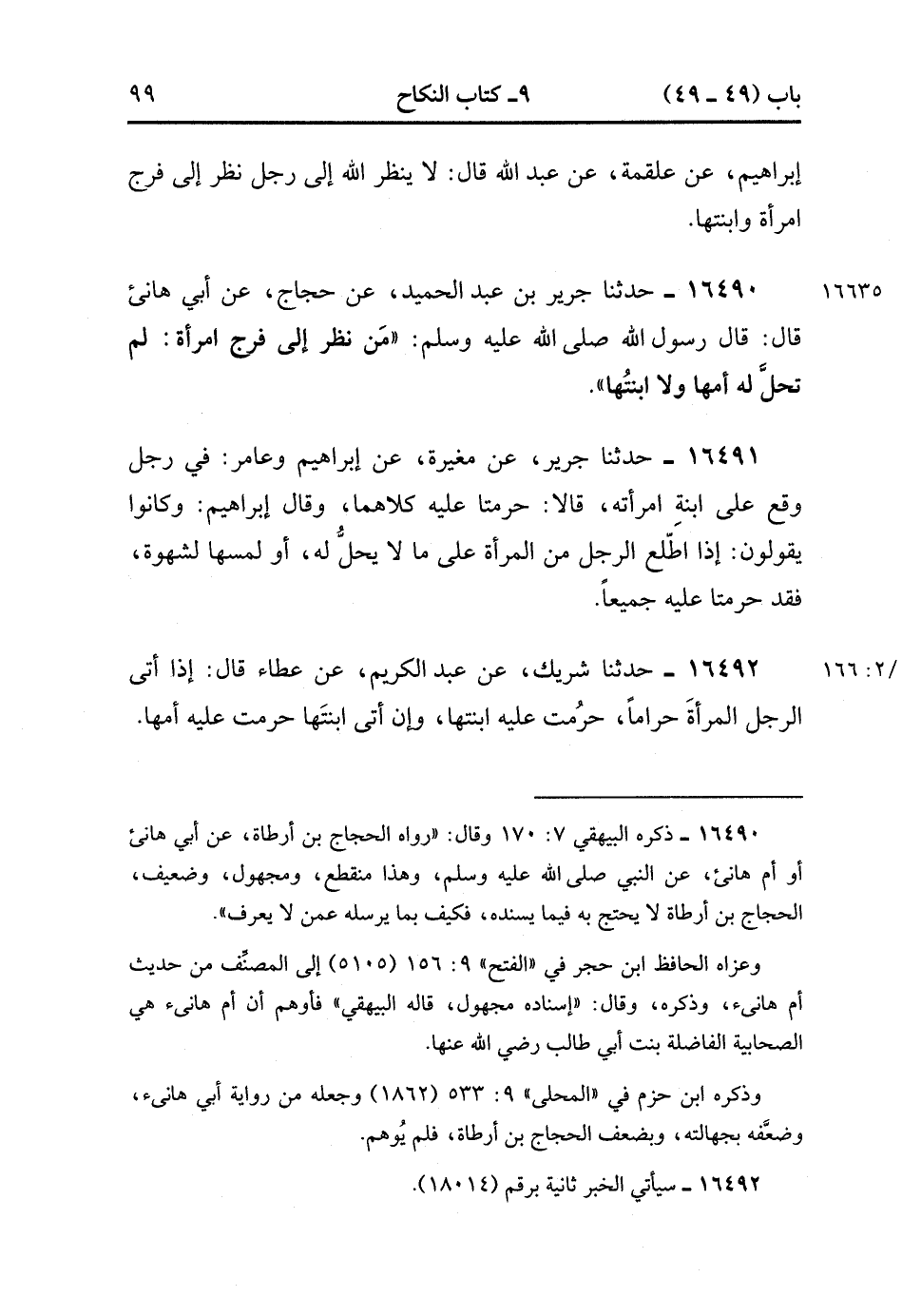 16490- حَدَّثَنَا جَرِيرُ بْنُ عَبْدِ الْحَمِيدِ , عَنْ حَجَّاجٍ , عَنْ أَبِي هَانِئٍ قَالَ : قَالَ رَسُولُ اللهِ صَلَّى الله عَلَيْهِ وَسَلَّمَ : مَنْ نَظَرَ إلَى فَرْجِ امْرَأَةٍ لَمْ تَحِلَّ لَهُ أُمُّهَا وَلاَ ابْنَتُهَا.