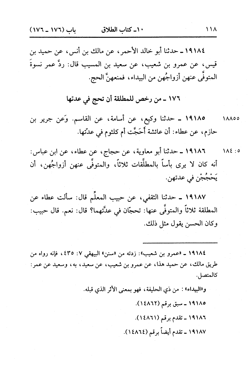 176- من رَخَّصَ لِلْمُطَلَّقَةِ أَنْ تَحُجَّ فِي عِدَّتِهَا.