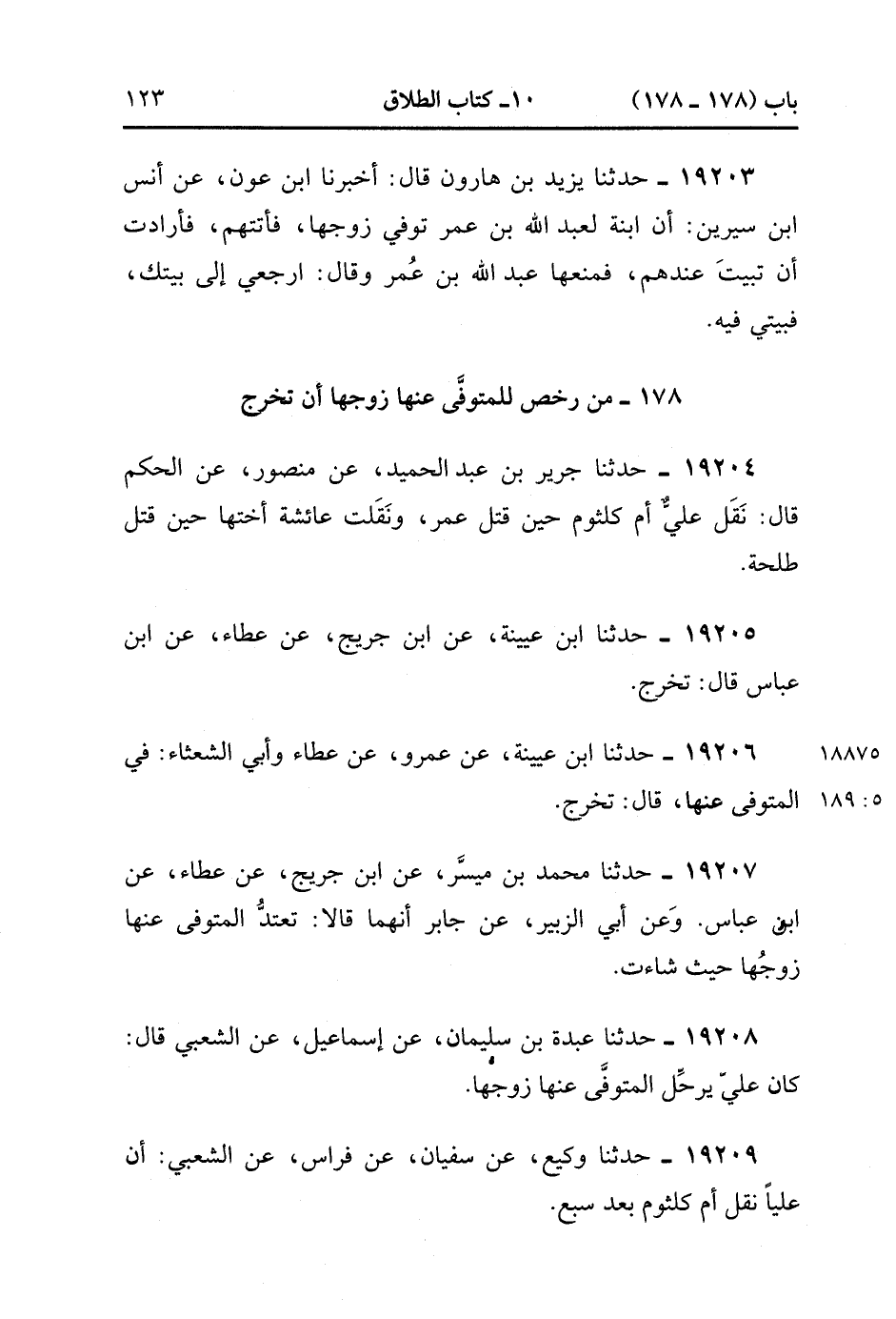 178- من رَخَّصَ لِلْمُتَوَفَّى عَنْهَا زَوْجُهَا أَنْ تَخْرُجَ.