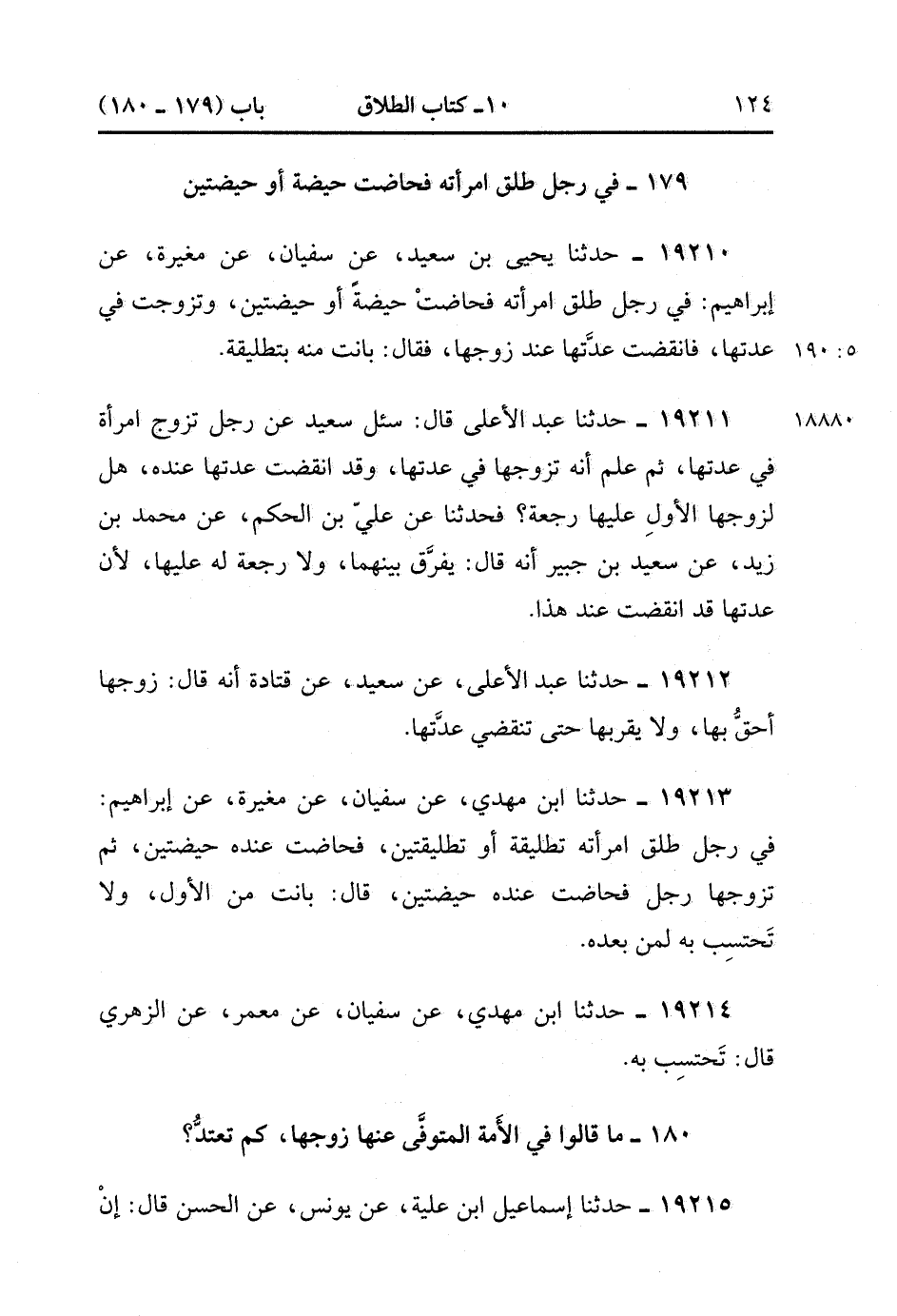 19210- حَدَّثَنَا يَحْيَى بْنُ سَعِيدٍ ، عَنْ سُفْيَانَ , عَنْ مُغِيرَةَ ، عَنْ إبْرَاهِيمَ فِي رَجُلٍ طَلَّقَ امْرَأَتَهُ فَحَاضَتْ حَيْضَةً ، أَوْ حَيْضَتَيْنِ وَتَزَوَّجَتْ فِي عِدَّتِهَا فَانْقَضَتْ عِدَّتُهَا عِنْدَ زَوْجِهَا فَقَالَ : بَانَتْ مِنْهُ بِتَطْلِيقَةٍ. (5/189).
