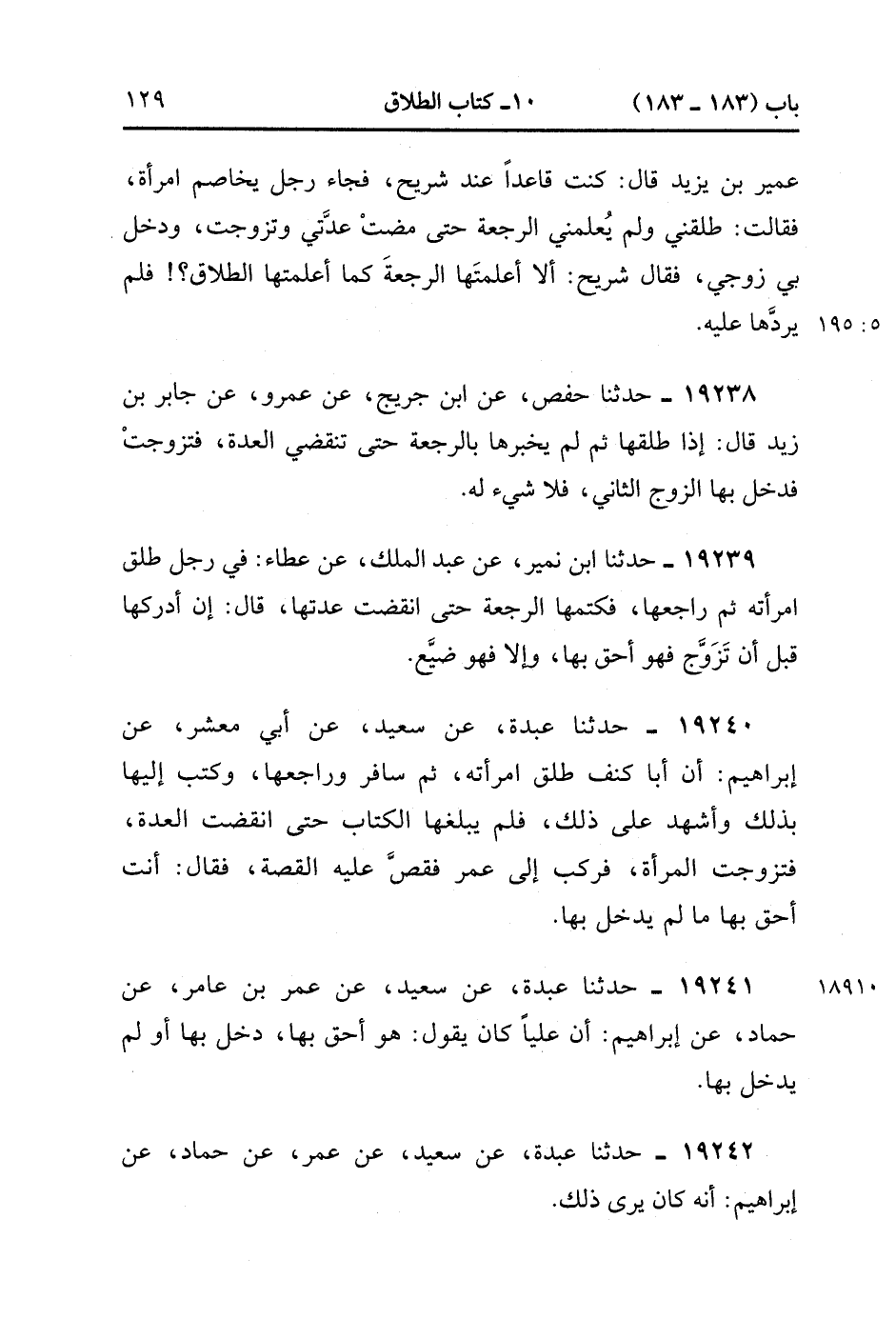 19242- حَدَّثَنَا عَبدَة , عَنْ سَعِيدٍ ، عَنْ عُمَرَ , عَنْ حَمَّادٍ , عَنْ إبْرَاهِيمَ أَنَّهُ كَانَ يَرَى ذَلِكَ. (5/195).