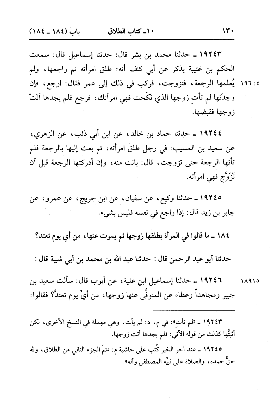 19246- حَدَّثَنَا أسْمَاعِيلُ بْنُ عُلَيَّةَ , عَنْ أَيُّوبَ قَالَ : سَأَلْتُ سَعِيدَ بْنَ جُبَيْرٍ وَمُجَاهِدًا وَعَطَاءً عَنِ الْمُتَوَفَّى عَنْهَا زَوْجُهَا ، مِنْ أَيِّ يَوْمٍ تَعْتَدُّ ؟ فَقَالُوا : مِنْ يَوْمِ يَمُوتُ قَالَ : وَسَمِعْت عِكْرِمَةَ وَنَافِعًا وَمُحَمَّدَ بْنَ سِيرِينَ يَقُولُونَ : عِدَّتُهَا من يَوْمَ يَمُوتُ : وَقَالَ طَلْقُ بْنُ حَبِيبٍ : مِنْ يَوْمِ يَمُوتُ. (5/196).