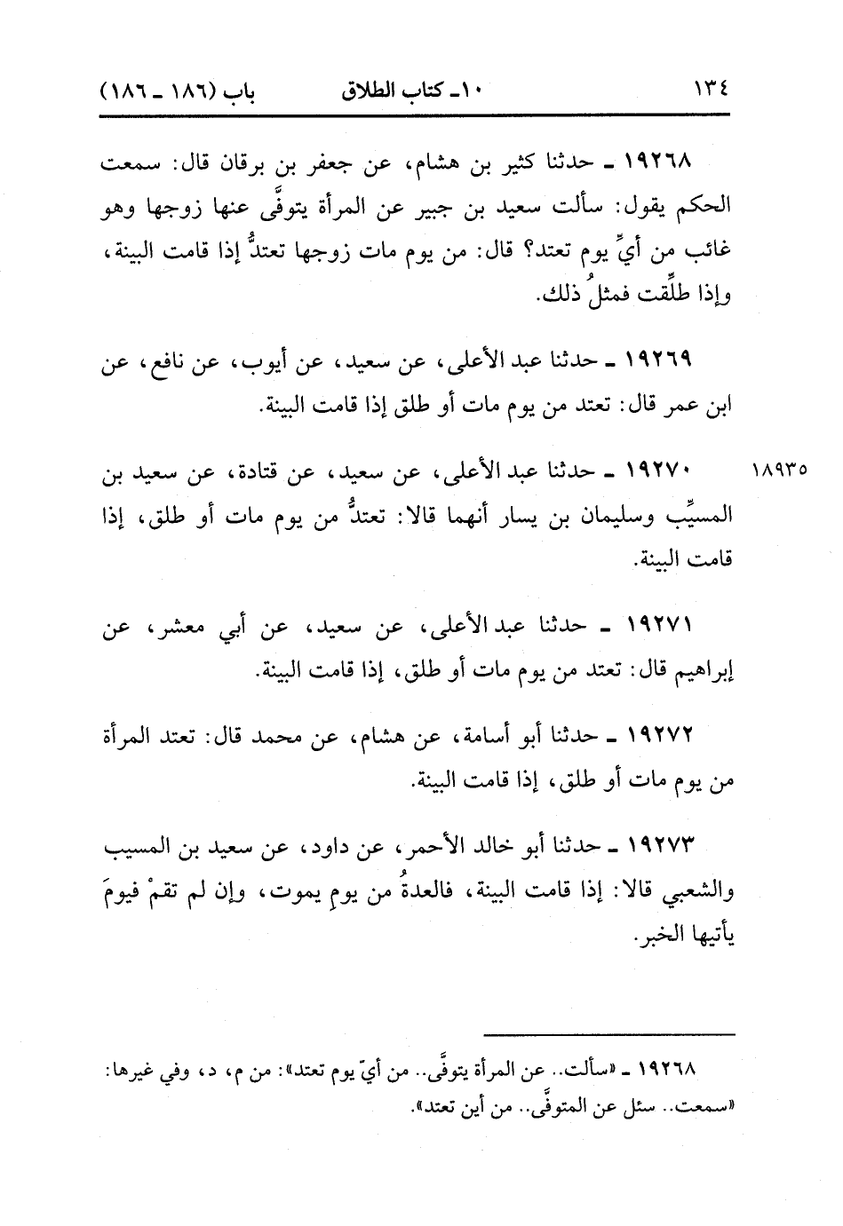 19268- حَدَّثَنَا كَثِيرُ بْنُ هِشَامٍ , عَنْ جَعْفَرِ بْنِ بُرْقَانَ ، قَالَ : سَمِعْتُ الْحَكَمَ يَقُولُ : سألت سَعِيدَ بْنَ جُبَيْرٍ ، عَنِ الْمُتَوَفَّى عَنْهَا زَوْجُهَا وَهُوَ غَائِبٌ مِنْ أي يوم تَعْتَدُّ ؟ قَالَ : مِنْ يَوْمِ مَاتَ زَوْجُهَا ، تَعْتَدُّ إذَا قَامَتِ الْبَيِّنَةُ وَإِذَا طُلِّقَتْ فَمِثْلُ ذَلِكَ.