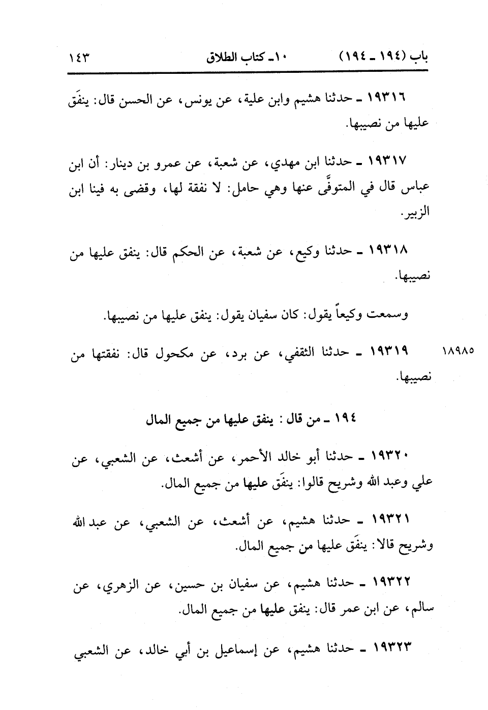 19321- حَدَّثَنَا هُشَيْمٌ ، عَنْ أَشْعَثَ ، عَنِ الشَّعْبِيِّ , عَنْ عَبْدِ اللهِ وَشُرَيْحٍ قَالاَ يُنْفَقُ عَلَيْهَا مِنْ جَمِيعِ الْمَالِ.