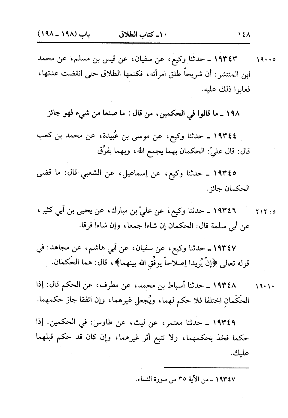 19345- حَدَّثَنَا وَكِيعٌ , عَنْ إسْمَاعِيلَ ، عَنِ الشَّعْبِيِّ قَالَ : مَا قَضَى الْحَكَمَانِ جَائِزٌ. (5/211).