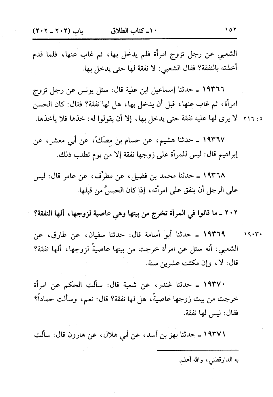202 - مَا قَالُوا فِي الْمَرْأَةِ تَخْرُجُ مِنْ بَيْتِهَا وَهِيَ عَاصِيَةٌ لِزَوْجِهَا ، أَلَهَا النَّفَقَةُ ؟.