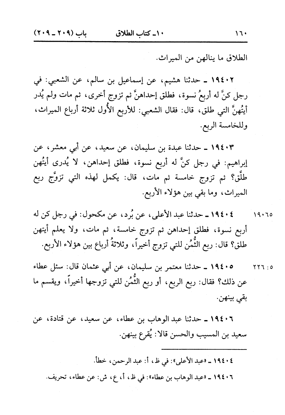 19402- حَدَّثَنَا هُشَيْمٌ ، عَنْ إسْمَاعِيلَ بْنِ سَالِمٍ ، عَنِ الشَّعْبِيِّ فِي رَجُلٍ كُنَّ لَهُ أَرْبَعُ نِسْوَةٍ فَطَلَّقَ إحْدَاهُنَّ , ثُمَّ تَزَوَّجَ أُخْرَى , ثُمَّ مَاتَ وَلَمْ يُدْرَ أَيَّتَهنَّ الَّتِي طَلَّقَ ، قَالَ : فَقَالَ الشَّعْبِيُّ : للأربع الأول ثَلاَثَةُ أَرْبَاعِ الْمِيرَاثِ وَلِلْخَامِسَةِ الرُّبُعُ.