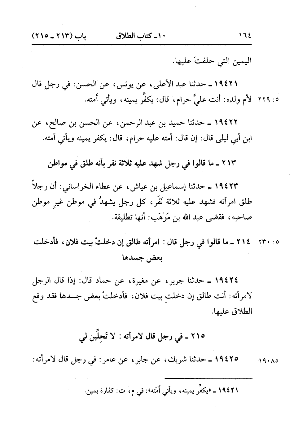 214- مَا قَالُوا فِي الرَّجُلِ قَالَ امْرَأَتُهُ : طَالِقٌ إِنْ دَخَلْت بَيْتَ فُلاَنٍ ، فَأَدْخَلَتْ بَعْضَ جَسَدِهَا.
