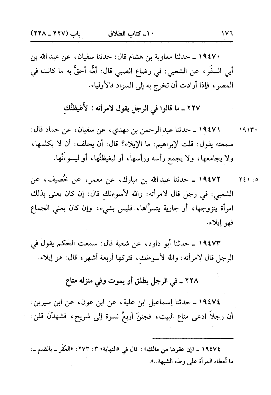 19471- حَدَّثَنَا عَبْدُ الرَّحْمَنِ بْنُ مَهْدِيٍّ , عَنْ سُفْيَانَ , عَنْ حَمَّادٍ ، قَالَ : سَمِعْتُهُ يَقُولُ : قُلْتُ لإبْرَاهِيمَ : مَا الإِيلاَءُ ؟ قَالَ : أَنْ يَحْلِفَ : لاَ يُكَلِّمُهَا وَلاَ يُجَامِعُهَا وَلاَ يَجْمَعُ رَأْسَهُ وَرَأْسَهَا وَلَيُغِيظَنَّهَا ، أَوْ لَيَسُوؤَنَّهَا. (5/240).