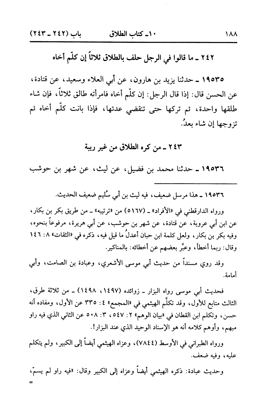 242 - مَا قَالُوا ؛ فِي الرَّجُلِ حَلَفَ بِالطَّلاَقِ ثَلاَثًا إِنْ كَلَّمَ أَخَاهُ.