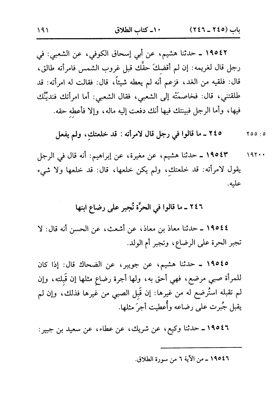 19542- حَدَّثَنَا هُشَيْمٌ ، عَنْ أَبِي إِسْحَاقَ الْكُوفِيِّ ، عَنِ الشَّعْبِيِّ فِي رَجُلٍ قَالَ لِغَرِيمِهِ : إِنْ لَمْ أَقْضِكَ حَقَّك قَبْلَ غُرُوبِ الشَّمْسِ فَامْرَأَتُهُ طَالِقٌ ، قَالَ : فَلَقِيَهُ مِنَ الْغَدِ فَزَعَمَ أنَّهُ لَمْ يُعْطِهِ شَيْئًا قَالَ : فَقَالَتْ لَهُ امْرَأَتُهُ : قَدْ طَلَّقْتنِي قَالَ : فَخَاصَمْته إلَى الشَّعْبِيِّ فَقَالَ الشَّعْبِيُّ : أَمَّا امْرَأَتُك فَنُدِينُك فِيهَا ، وَأَمَّا الرَّجُلُ فَبَيِّنَتُك فيها أَنَّك دَفَعْت إلَيْهِ مَالَهُ وَإِلاَّ فَأَعْطِهِ حَقَّهُ. (5/254).