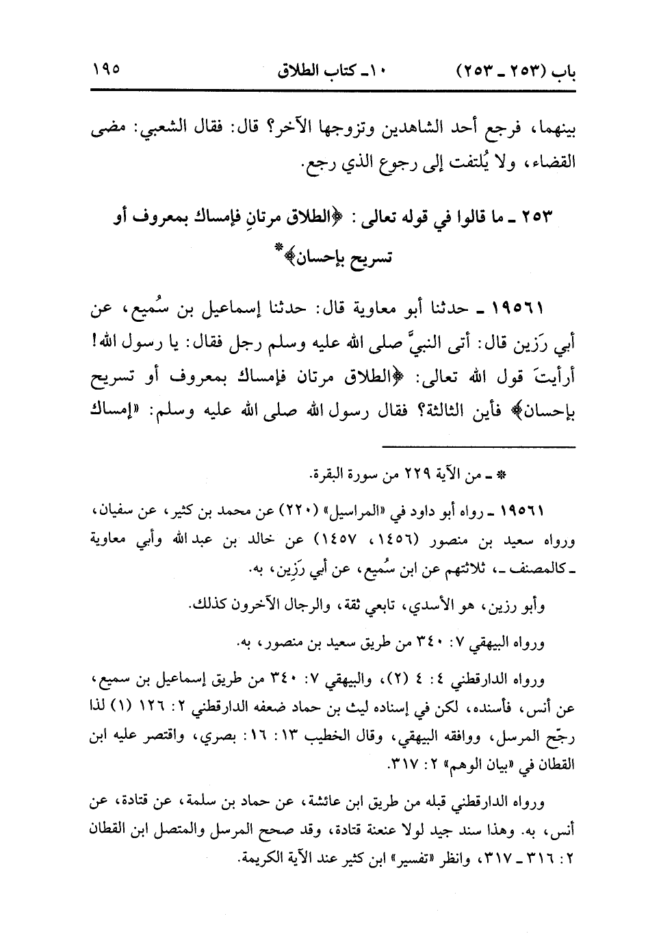 253 - مَا قَالُوا فِي قَوْلِهِ تَعَالَى {الطَّلاَقُ مَرَّتَانِ فَإِمْسَاكٌ بِمَعْرُوفٍ أَوْ تَسْرِيحٌ بِإِحْسَانٍ}.