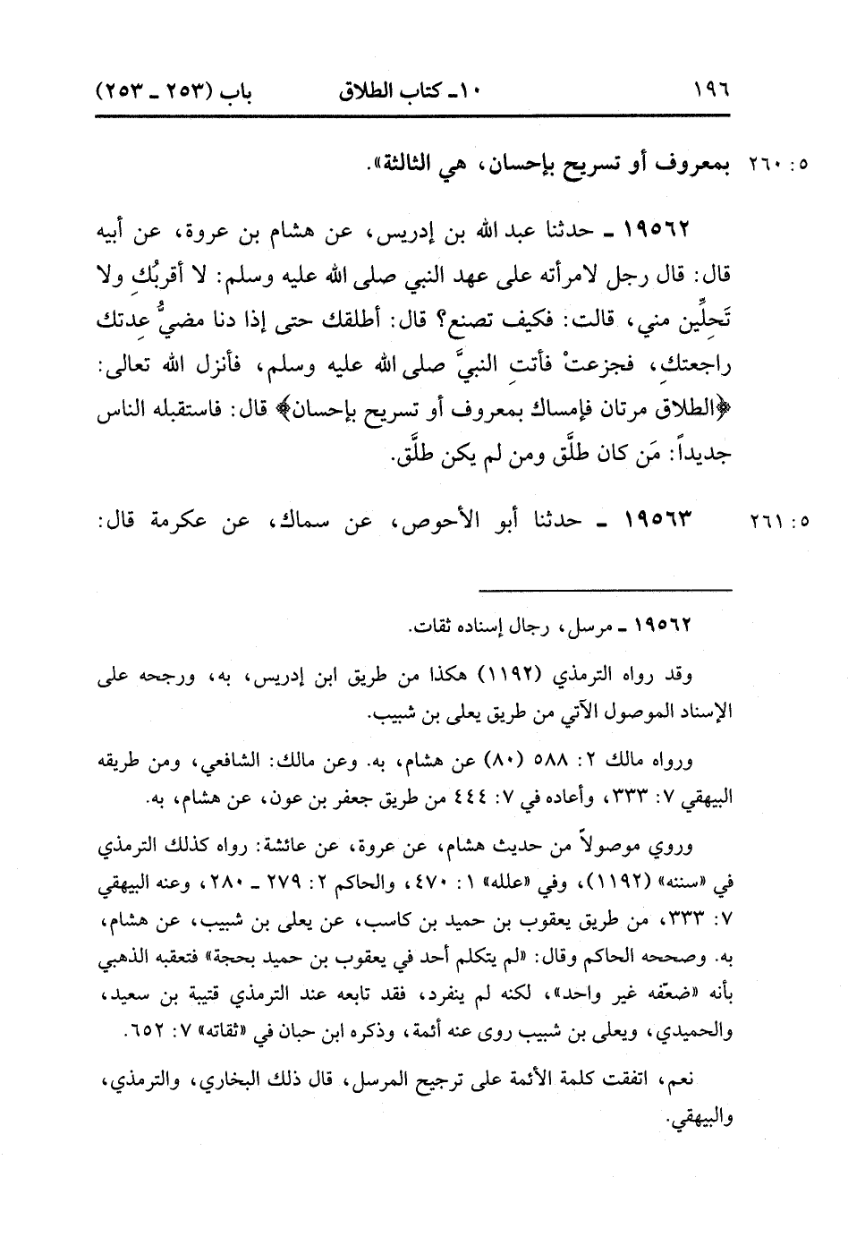 19563- حَدَّثَنَا أَبُو الأَحْوَصِ , عَنْ سِمَاكٍ , عَنْ عِكْرِمَةَ قَالَ : {الطَّلاَقُ مَرَّتَانِ فَإِمْسَاكٌ بِمَعْرُوفٍ أَوْ تَسْرِيحٌ بِإِحْسَانٍ} قَالَ : إذَا أَرَادَ الرَّجُلُ أَنْ يُطَلِّقَ امْرَأَتَهُ فَيُطَلِّقُهَا تَطْلِيقَتَيْنِ ، فَإِنْ أَرَادَ أَنْ يُرَاجِعَهَا كَانَتْ لَهُ عَلَيْهَا رَجْعَةٌ ، وَإِنْ شَاءَ طَلَّقَهَا أُخْرَى فَلاَ تَحِلُّ لَهُ حَتَّى تَنْكِحَ زَوْجًا غَيْرَهُ. (5/261).