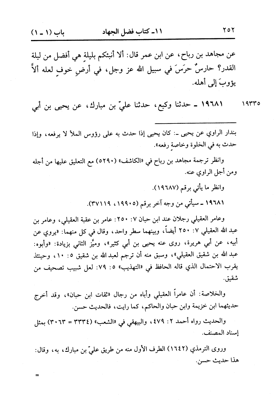19681- حَدَّثَنَا وَكِيعٌ ، حَدَّثَنَا عَلِيُّ بْنُ مُبَارَكٍ ، عَنْ يَحْيَى بْنِ أَبِي كَثِيرٍ ، عَنْ عَامِرٍ الْعُقَيْلِيِّ ، عَنْ أَبِيهِ ، عَنْ أَبِي هُرَيْرَةَ ، قَالَ : قَالَ رَسُولُ اللهِ صَلَّى الله عَلَيْهِ وَسَلَّمَ : أَوَّلُ ثَلاَثَةٍ يَدْخُلُونَ الْجَنَّةَ , الشَّهِيدُ , وَرَجُلٌ عفيف مُتَعَفِّفٌ ذُو عِيَالٍ , وَعَبْدٌ أَحْسَنَ عِبَادَةَ رَبِّهِ , وَأَدَّى حَقَّ مَوَلِيه , وَأَوَّلُ ثَلاَثَةٍ يَدْخُلُونَ النَّارَ أَمِيرٌ مُسَلَّطٌ , وَذُو ثَرْوَةٍ من مال لاَ يُؤَدِّي حَقَّهُ , وَفَقِيرٌ فَخُورٌ. (5/296).