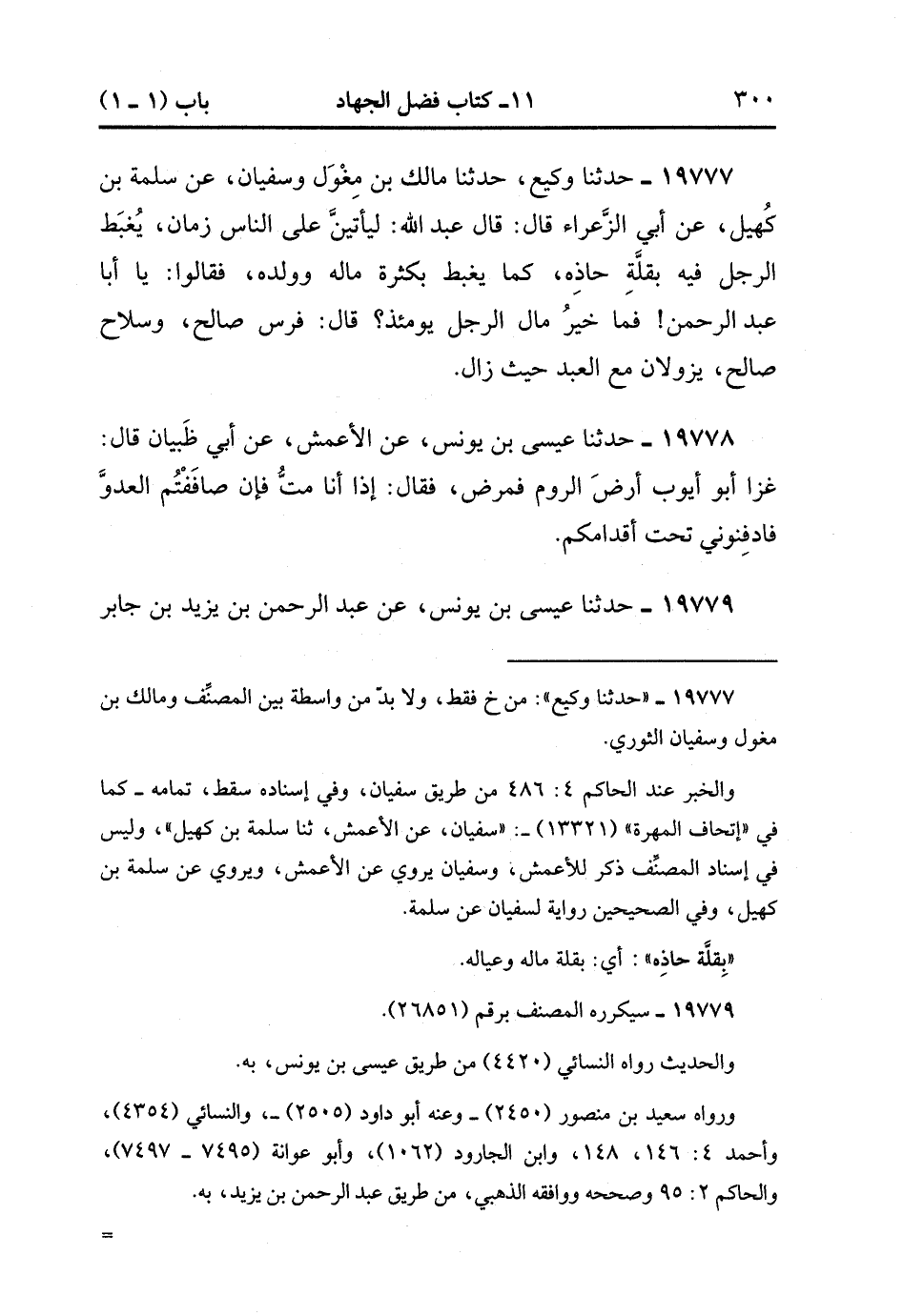19777- حَدَّثَنَا وَكِيعٌ حَدَّثَنَا مَالِكُ بْنُ مِغْوَلٍ وَسُفْيَانُ ، عَنْ سَلَمَةَ بْنِ كُهَيْلٍ ، عَنْ أَبِي الزَّعْرَاءِ ، قَالَ : قَالَ عَبْدُ اللهِ : لَيَأْتِيَنَّ عَلَى النَّاسِ زَمَانٌ يُغْبَطُ الرَّجُلُ فِيهِ بِقِلَّةِ حَاذِهِ كَمَا يُغْبَطُ بِكَثْرَةِ مَالِهِ وَوَلَدِهِ ، فَقَالُوا : يَا أَبَا عَبْدِ الرَّحْمَنِ ، فَمَا خَيْرُ مَالِ الرَّجُلِ يَوْمئِذٍ ؟ قَالَ : فَرَسٌ صَالِحٌ وَسِلاَحٌ صَالِحٌ يَزُولاَنِ مَعَ الْعَبْدِ حَيْثُ زَالَ.