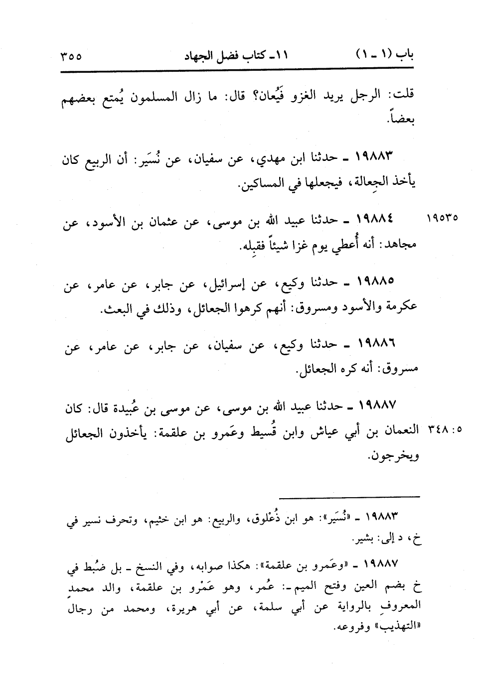 19883- حَدَّثَنَا ابْنُ مَهْدِيٍّ ، عَنْ سُفْيَانَ ، عَنْ نسير ، أَنَّ الرَّبِيعَ كَانَ يَأْخُذُ الْجَعَالَةَ فَيَجْعَلُهَا فِي الْمَسَاكِينِ.