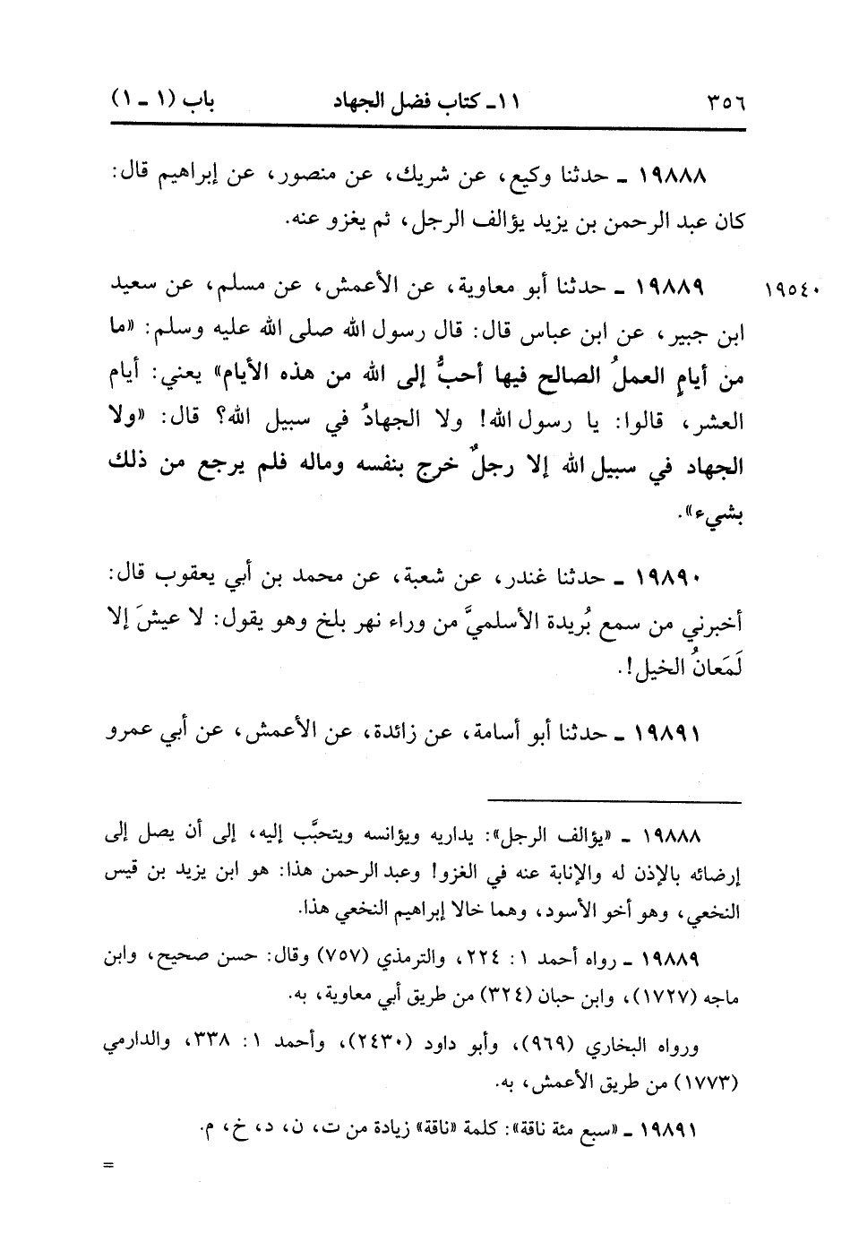 19889- حَدَّثَنَا أَبُو مُعَاوِيَةَ ، عَنِ الأَعْمَشِ ، عَنْ مُسْلِمٍ ، عَنْ سَعِيدِ بْنِ جُبَيْرٍ ، عَنِ ابْنِ عَبَّاسٍ ، قَالَ : قَالَ رَسُولُ اللهِ صَلَّى الله عَلَيْهِ وَسَلَّمَ : مَا مِنْ أَيَّامٍ الْعَمَلُ الصَّالِحُ فِيهَا أَحَبُّ إلَى اللهِ مِنْ هَذِهِ الأَيَّامِ , يَعْنِي أَيَّامَ الْعَشْرِ ، قَالُوا : يَا رَسُولَ اللهِ ، وَلاَ الْجِهَادُ فِي سَبِيلِ اللهِ ؟ قَالَ : وَلاَ الْجِهَادُ فِي سَبِيلِ اللهِ إِلاَّ رَجُلٌ خَرَجَ بِنَفْسِهِ وَمَالِهِ فَلَمْ يَرْجِعْ مِنْ ذَلِكَ بِشَيْءٍ.