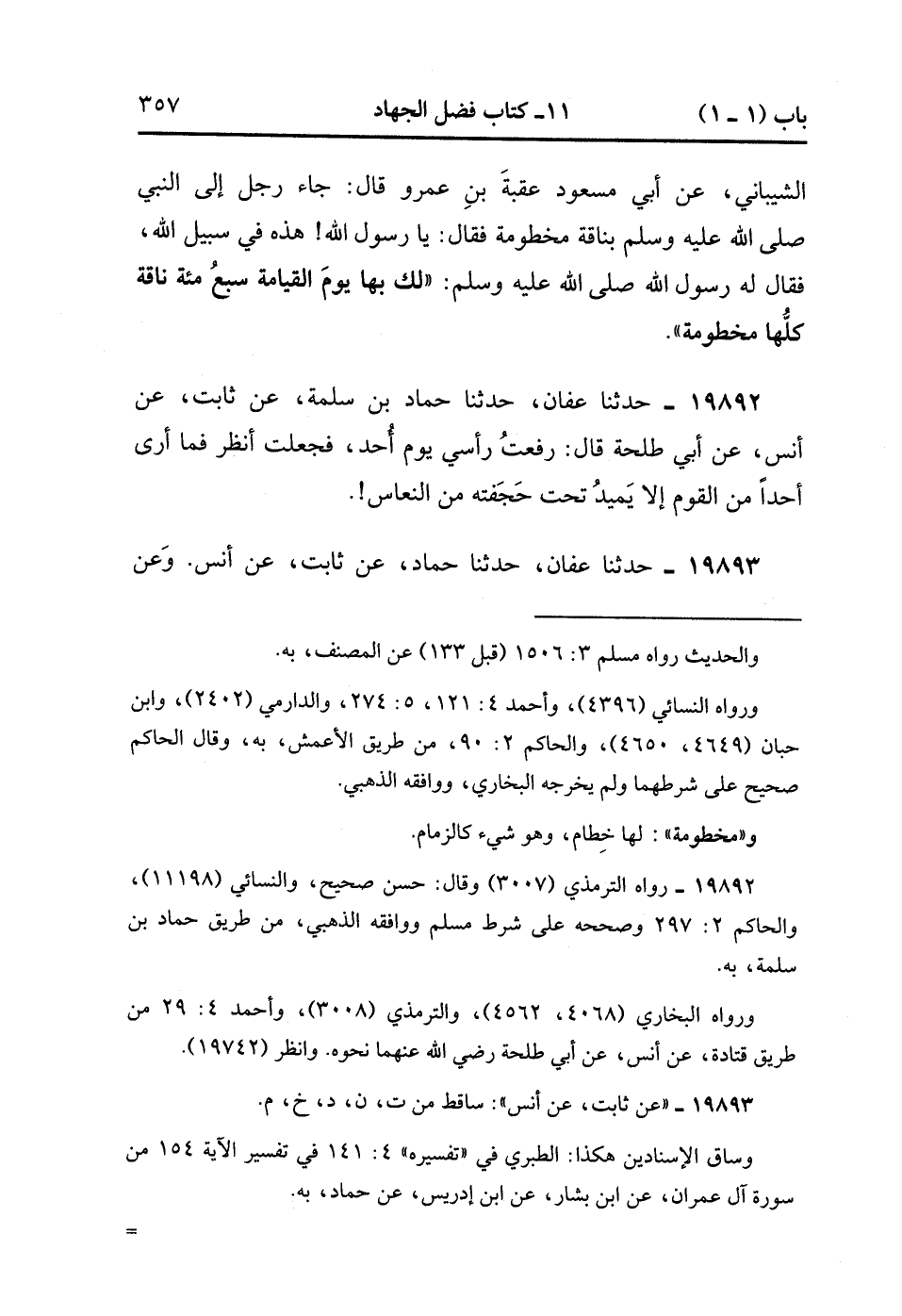 19893- حَدَّثَنَا عَفَّانُ ، حَدَّثَنَا حَمَّادُ ، عَنْ ثابت , عَنْ أنس , وعَنْ هِشَامٍ ، عَنْ أَبِيهِ ، عَنِ الزُّبَيْرِ مِثْلَهُ. (5/348).