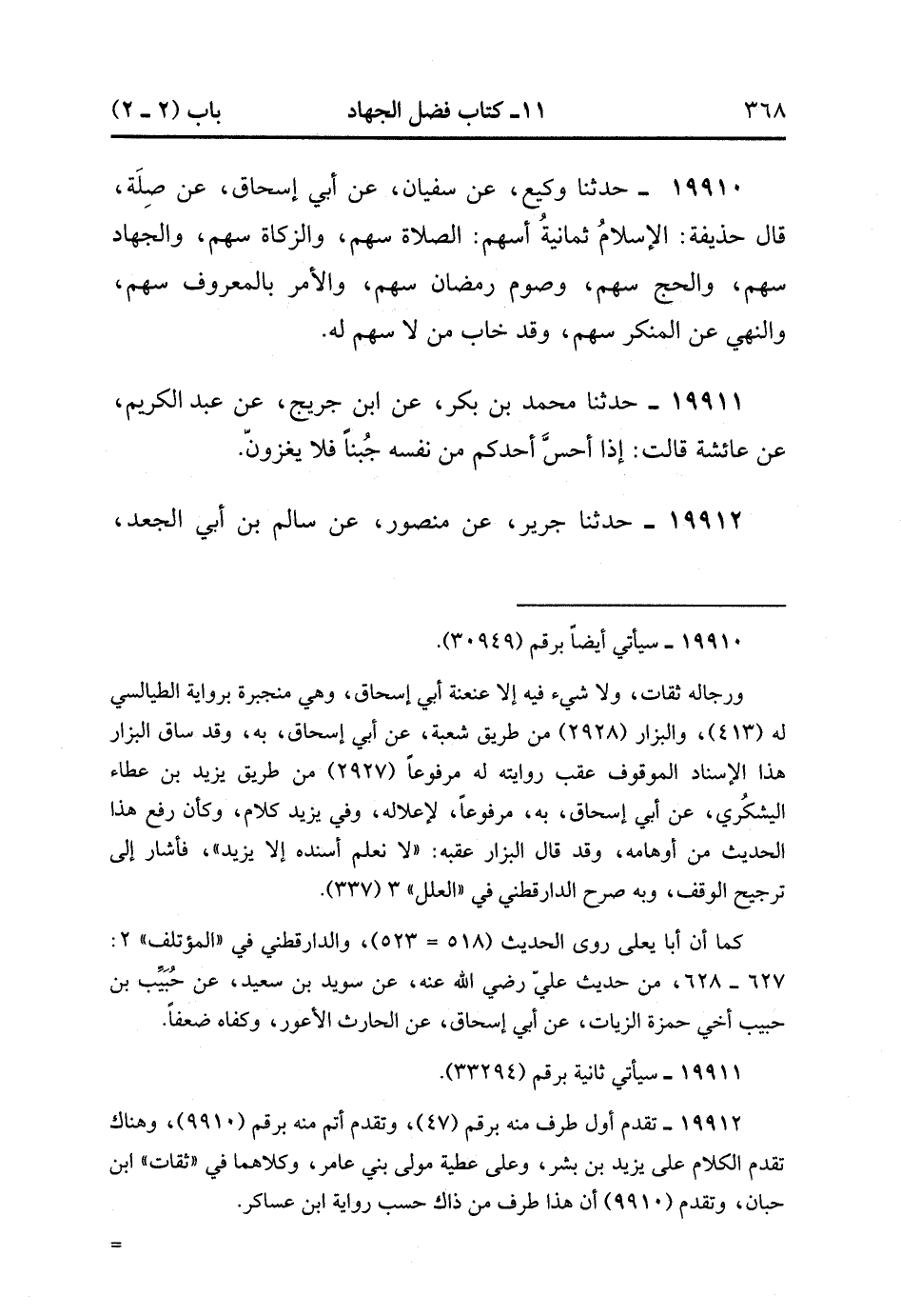 19910- حَدَّثَنَا وَكِيعٌ ، عَنْ سُفْيَانَ ، عَنْ أَبِي إِسْحَاقَ ، عَنْ صِلَةَ ، قَالَ حُذَيْفَةُ : الإِسْلاَمُ ثَمَانيَةُ أَسْهُمٍ : الصَّلاَةُ سَهْمٌ , وَالزَّكَاةُ سَهْمٌ , وَالْجِهَادُ سَهْمٌ , وَالْحَجُّ سَهْمٌ , وَصَوْمُ رَمَضَانَ سَهْمٌ , وَالأَمْرُ بِالْمَعْرُوفِ سَهْمٌ , وَالنَّهْيُ عَنِ الْمُنْكَرِ سَهْمٌ ، وَقَدْ خَابَ مَنْ لاَ سَهْمَ لَهُ.