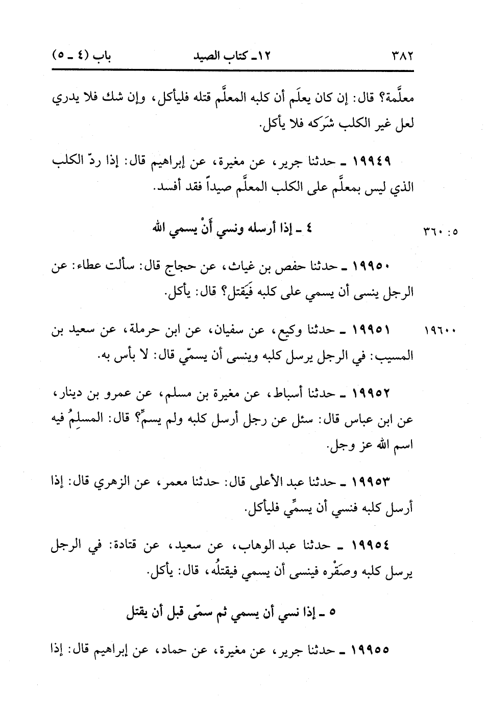 19955- حَدَّثَنَا جَرِيرٌ ، عَنْ مُغِيرَةَ ، عَنْ حَمَّادٍ ، عَنْ إبْرَاهِيمَ ، قَالَ : إذَا رَمَيْت بِالسَّهْمِ ، وَلَمْ تُسَمِّ فَذَكَرْت قَبْلَ أَنْ تَقْتُلَ الصَّيْدَ ، ثُمَّ سَمَّيْتَ ، ثُمَّ قَتَلَهُ فَكُلْ , وَالْكَلْبُ مِثْلُ ذَلِكَ. (5/360).