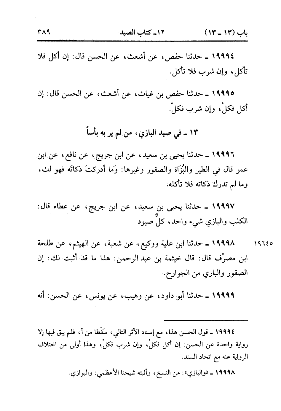 13- فِي صَيْدِ الْبَازِي ، مَنْ لَمْ يَرَ بِهِ بَأْسًا.