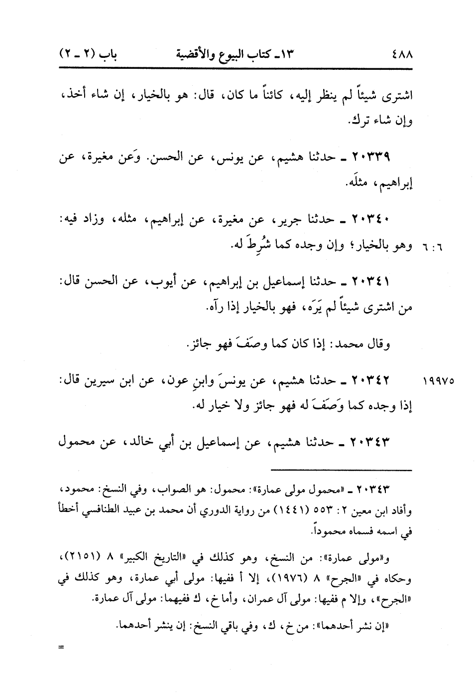 20342- حَدَّثَنَا هُشَيْمٌ ، عَنْ يُونُسَ ، وَابْنِ عَوْنٍ ، عَنِ ابْنِ سِيرِينَ ، قَالَ : إذَا وَجَدَهُ كَمَا وُصِفَ لَهُ ، فَهُوَ جَائِزٌ ، وَلاَ خِيَارَ لَهُ.