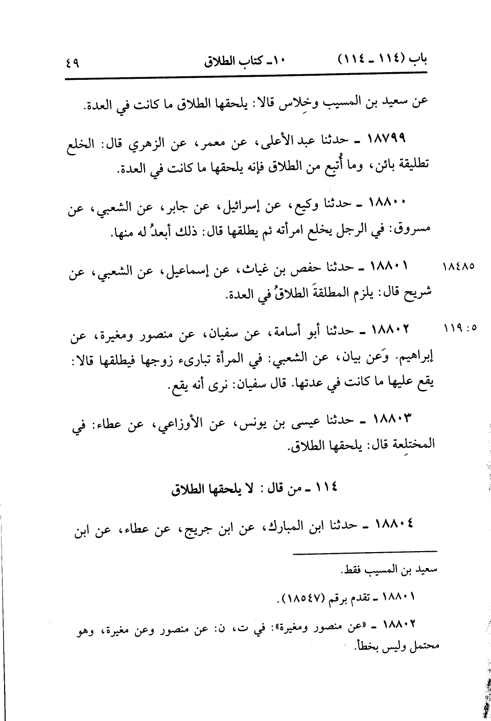 18801- حَدَّثَنَا حَفْصُ بْنُ غِيَاثٍ ، عَنْ إسْمَاعِيلَ ، عَنِ الشَّعْبِيِّ ، عَنْ شُرَيْحٍ ، قَالَ : يَلْزَمُ الْمُطَلَّقَةَ الطَّلاَقُ فِي الْعِدَّةِ.