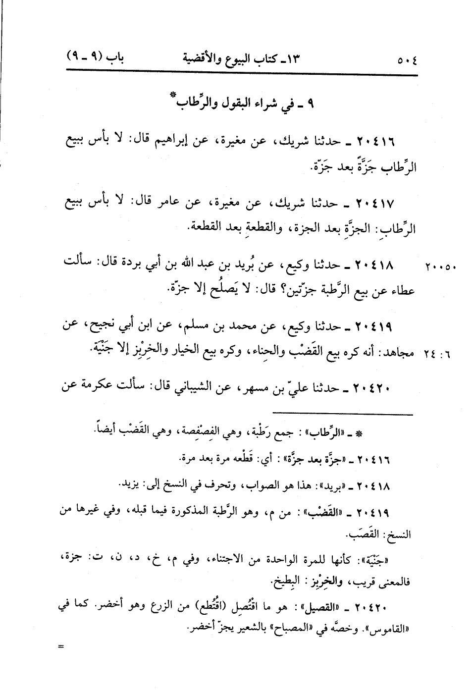 9- فِي شِراءِ البقولِ والرِّطابِ.