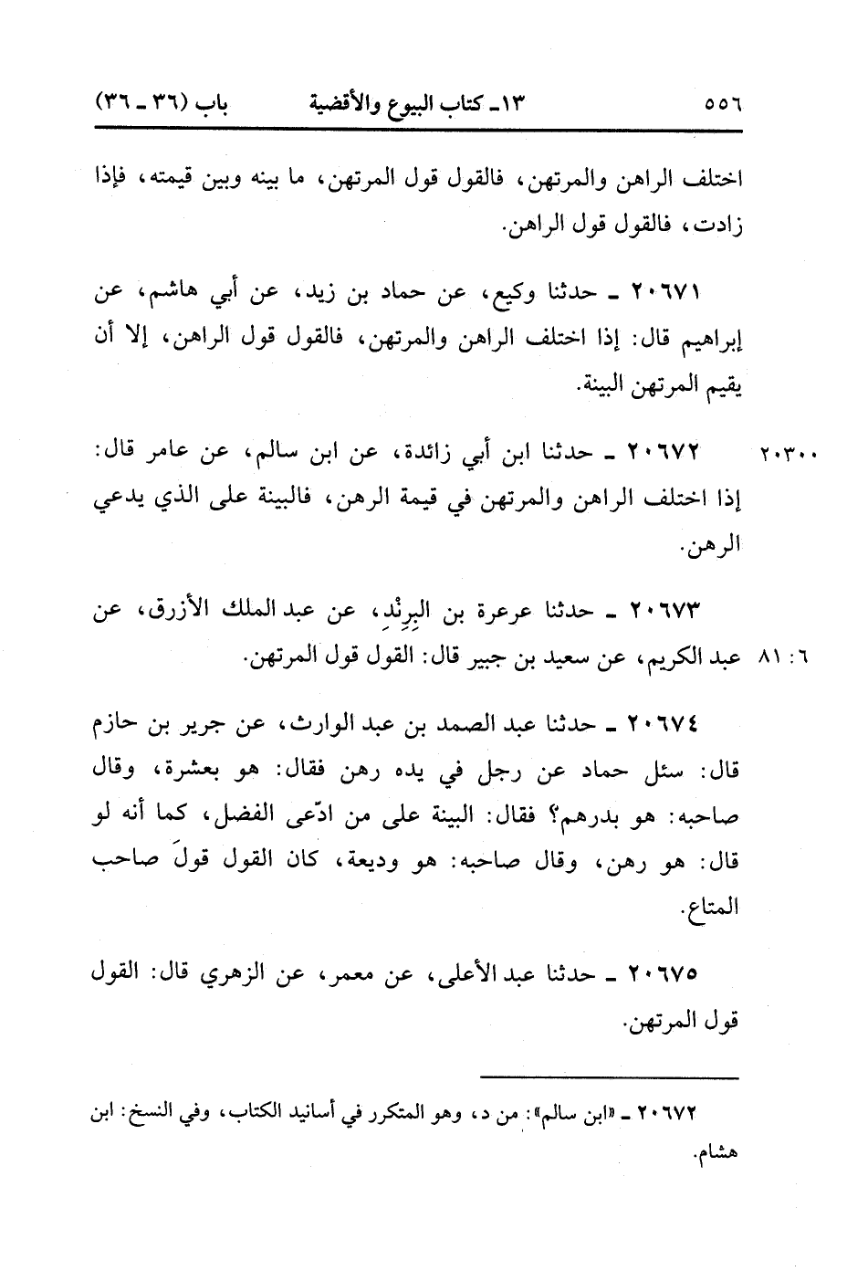 20675- حَدَّثَنَا عَبْدُ الأَعْلَى ، عَنْ مَعْمَرٍ ، عَنِ الزُّهْرِيِّ ، قَالَ : الْقَوْلُ قَوْلُ الْمُرْتَهِنِ. (6/81).