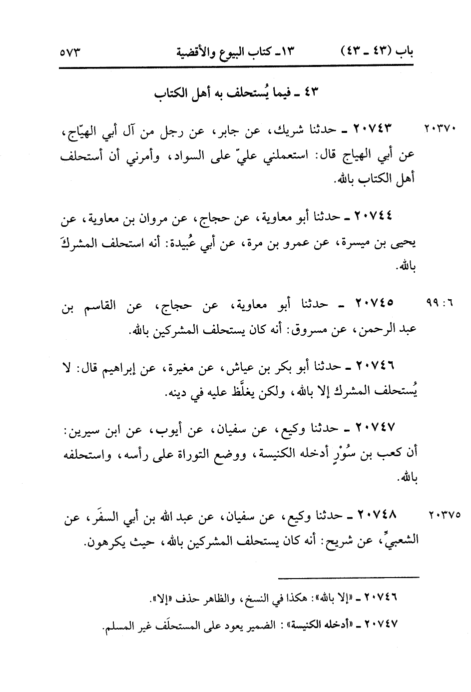 43- فِيما يستحلف بِهِ أهل الكِتابِ.