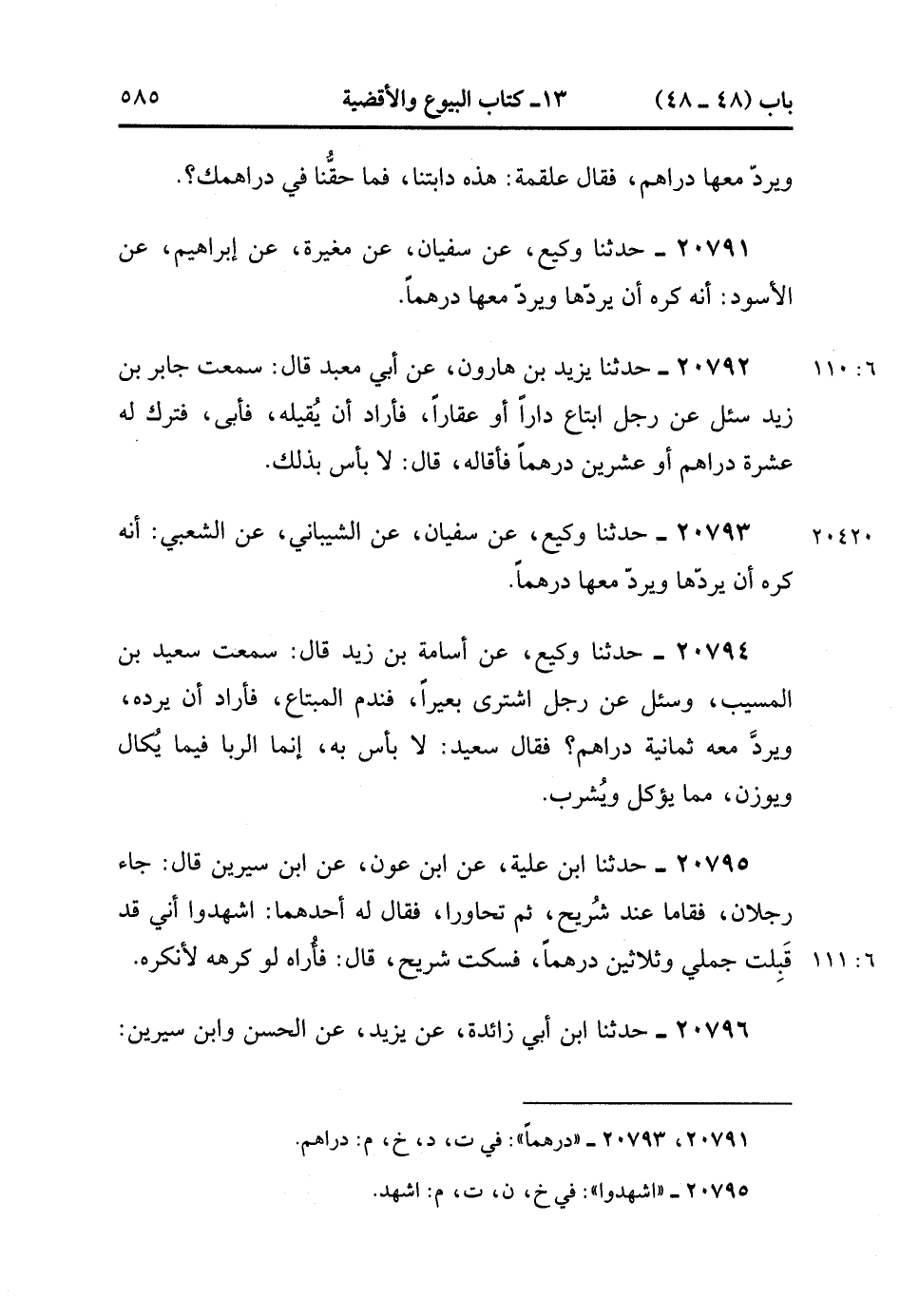 20793- حَدَّثَنَا وَكِيعٌ ، عَنْ سُفْيَانَ ، عَنِ الشَّيْبَانِيِّ ، عَنِ الشَّعْبِيِّ ، أَنَّهُ كَرِهَ أَنْ يَرُدَّهَا وَيَرُدَّ مَعَهَا دِرْهَمًا.