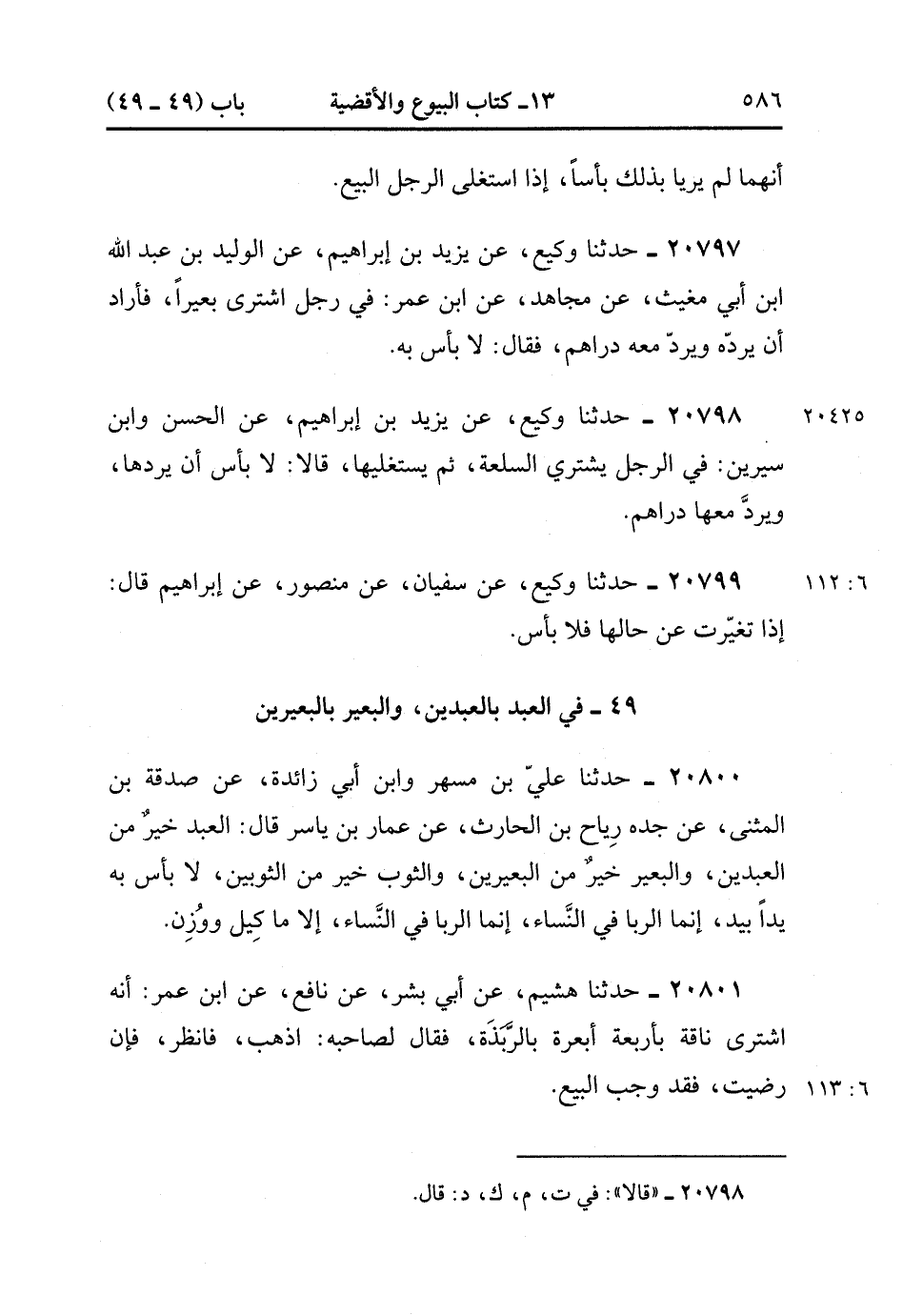 49- فِي العبدِ بِالعبدينِ والبعِيرِ بِالبعِيرينِ.