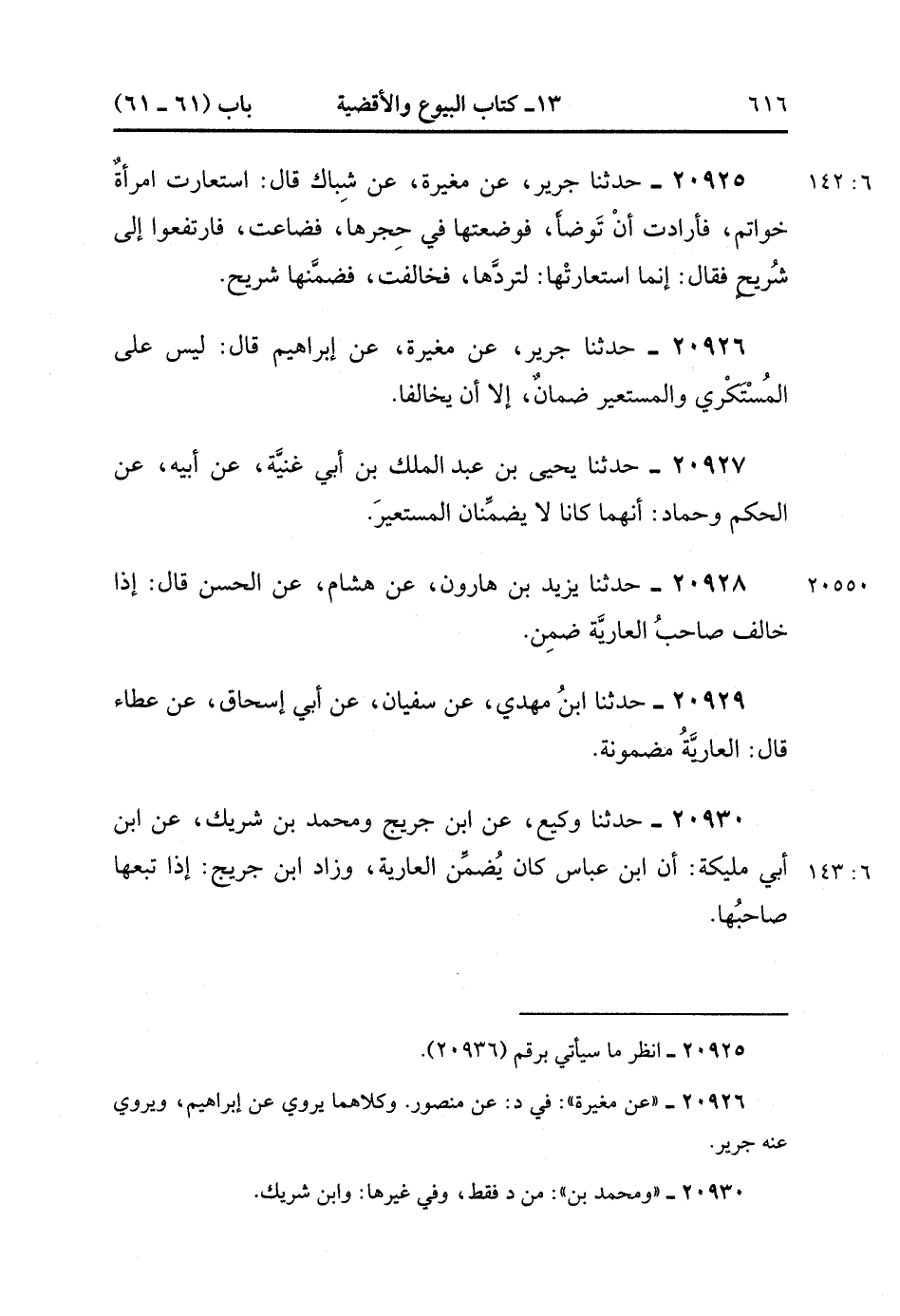 20930- حَدَّثَنَا وَكِيعٌ ، عَنِ ابْنِ جُرَيْجٍ ، وَمحمد بْنِ شَرِيكٍ ، عَنِ ابْنِ أَبِي مُلَيْكَةَ ، أَنَّ ابْنَ عَبَّاسٍ كَانَ يُضَمِّنُ الْعَارِيَّةَ ، وَزَادَ ابْنُ جُرَيْجٍ : إذَا تبعها صَاحِبُهَا. (6/142).