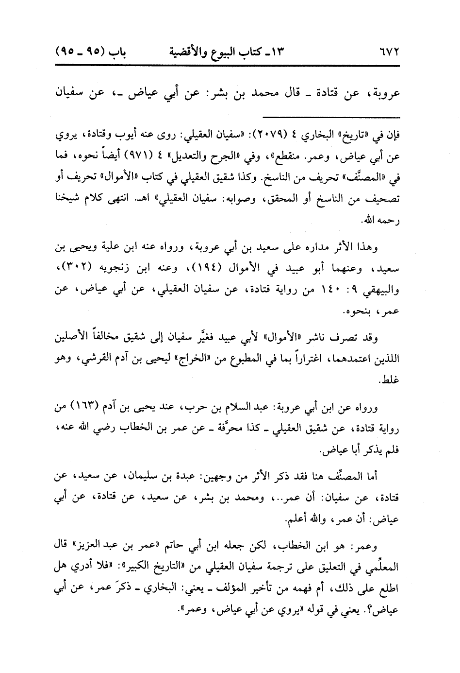 21195- حَدَّثَنَا عَبْدَةُ بْنُ سُلَيْمَانَ وَمُحَمَّدُ بْنُ بِشْرٍ ، عَنْ سَعِيدِ بْنِ أَبِي عَرُوبَةَ ، عَنْ قَتَادَةَ ، قَالَ مُحَمَّدُ بْنُ بِشْرٍ : عَنْ أَبِي عِيَاضٍ ، عَنْ سُفْيَانَ الْعُقَيْلِيِّ ، أَنَّ عُمَرَ ، قَالَ : لاَ تَشْتَرُوا مِنْ رَقِيقِ أَهْلِ الذِّمَّةِ شَيْئًا فَإِنَّهُمْ أَهْلُ خَرَاجٍ ، يَبِيعُ بَعْضُهُمْ بَعْضًا ، وَلاَ مِنْ أَرْضِهِمْ. (6/211).
