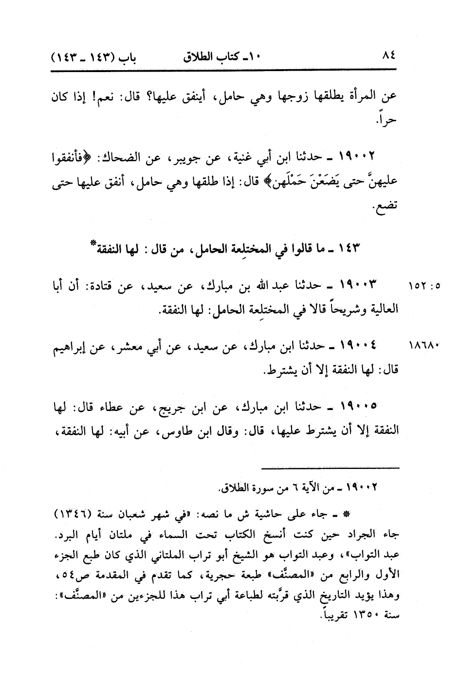 19003- حَدَّثَنَا عَبْدُ اللهِ بْنُ مُبَارَكٍ , عَنْ سَعِيدٍ ، عَنْ قَتَادَةَ أَنَّ أَبَا الْعَالِيَةِ وَشُرَيْحًا قَالاَ : فِي الْمُخْتَلِعَةِ الْحَامِلِ : لَهَا النَّفَقَةُ. (5/151).