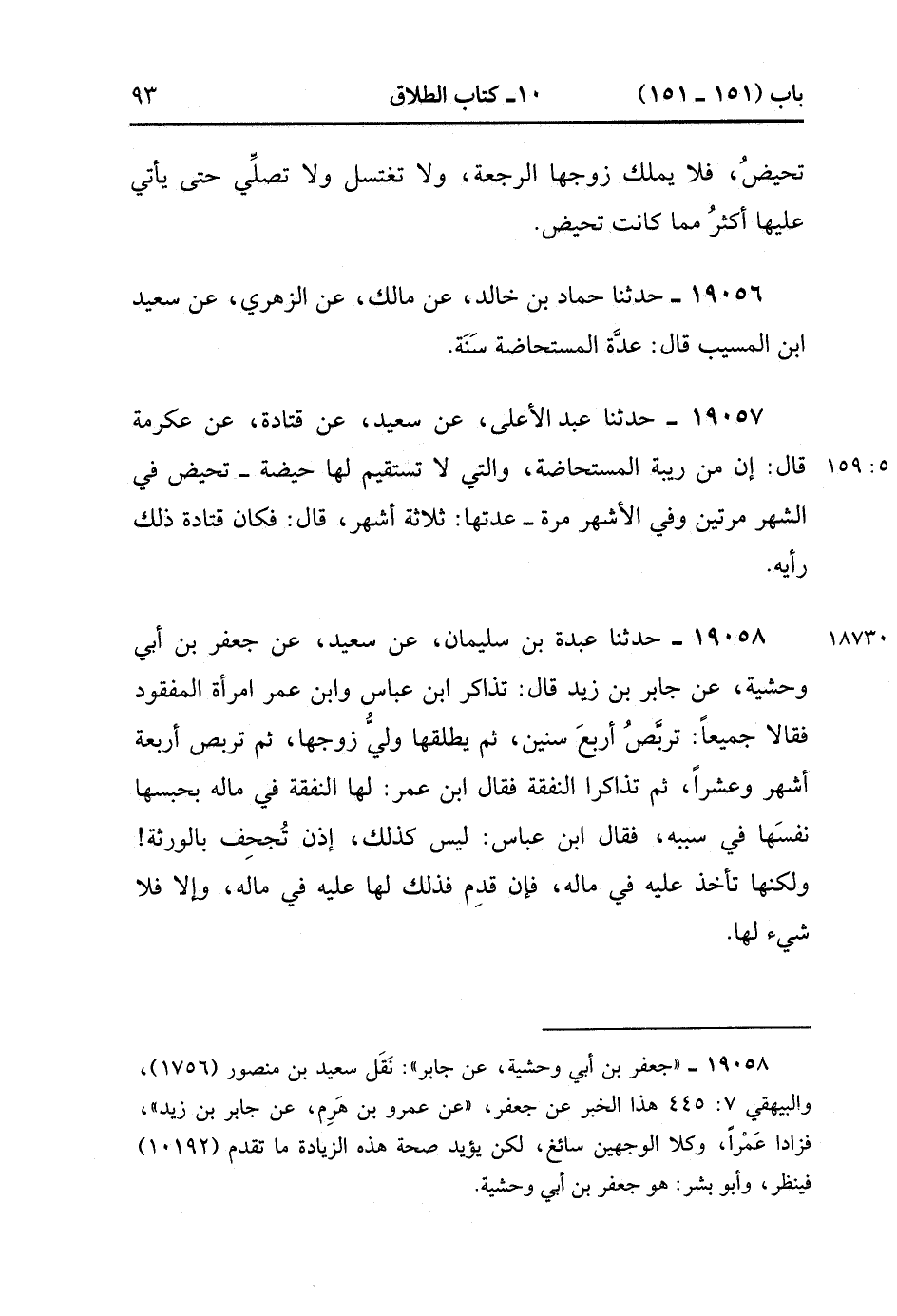 19056- حَدَّثَنَا حَمَّادُ بْنُ خَالِدٍ , عَنْ مَالِكٍ ، عَنِ الزُّهْرِيِّ , عَنْ سَعِيدِ بْنِ الْمُسَيَّبِ قَالَ : عِدَّةُ الْمُسْتَحَاضَةِ سَنَةٌ.