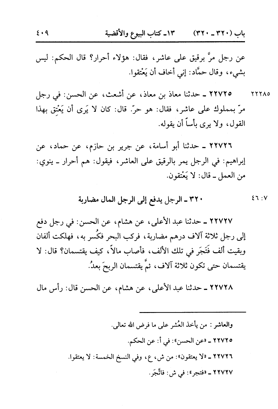 22726- حَدَّثَنَا أَبُو أُسَامَةَ ، عَنْ جَرِيرِ بْنِ حَازِمٍ ، عَنْ حَمَّادٍ ، عَنْ إبْرَاهِيمَ : فِي الرَّجُلِ يَمُرُّ بِالرَّقِيقِ عَلَى الْعَاشِرِ فَيَقُولُ : هُمْ أَحْرَارٌ - يَنْوِي مِنَ الْعَمَلِ - قَالَ : لاَ يَعْتِقُونَ. (7/45).