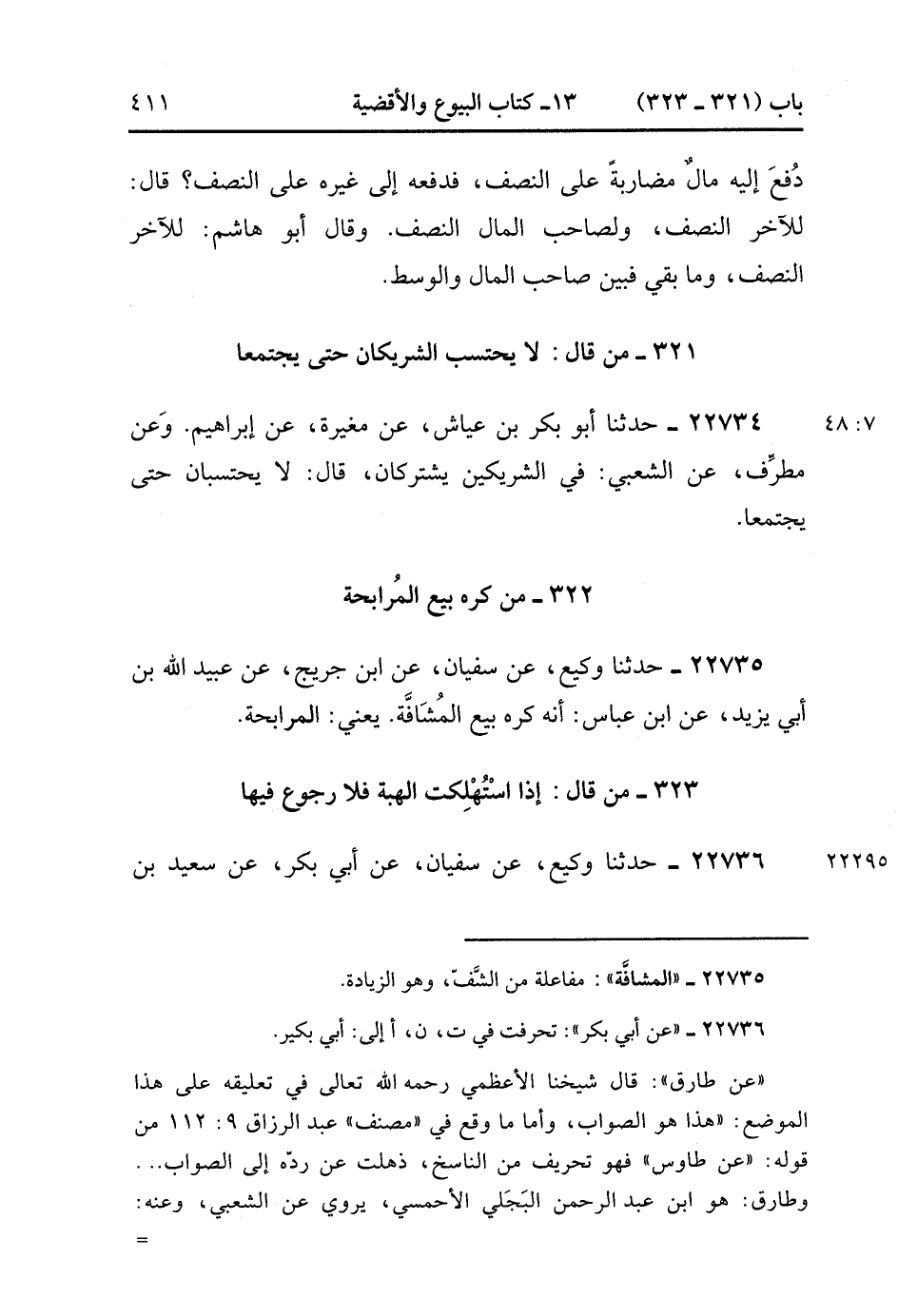 22734- حَدَّثَنَا أَبُو بَكْرِ بْنُ عَيَّاشٍ ، عَنْ مُغِيرَةَ ، عَنْ إبْرَاهِيمَ. وَعَنْ مُطَرِّفٍ ، عَنِ الشَّعْبِيِّ : فِي الشَّرِيكَيْنِ يَشْتَرِكَانِ ، قَالَ : لاَ يَحْتَسِبَانِ حَتَّى يَجْتَمِعَا. (7/47).