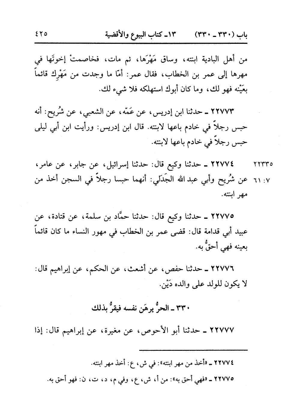 22776- حَدَّثَنَا حَفْصٌ ، عَنْ أَشْعَثَ ، عَنِ الْحَكَمِ ، عَنْ إبْرَاهِيمَ ، قَالَ : لاَ يَكُونُ لِلْوَلَدِ عَلَى وَالِدِهِ دَيْنٌ.