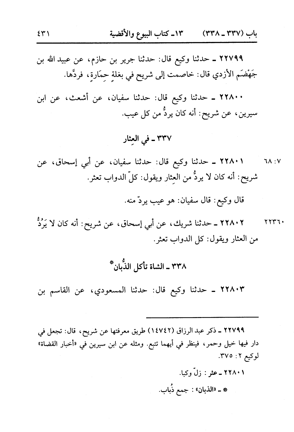 22800- حَدَّثَنَا وَكِيعٌ , قَالَ : حدَّثَنَا سُفْيَانُ ، عَنْ أَشْعَثَ ، عَنِ ابْنِ سِيرِينَ ، عَنْ شُرَيْحٍ : أَنَّهُ كَانَ يَرُدُّ مِنْ كُلِّ عَيْبٍ.