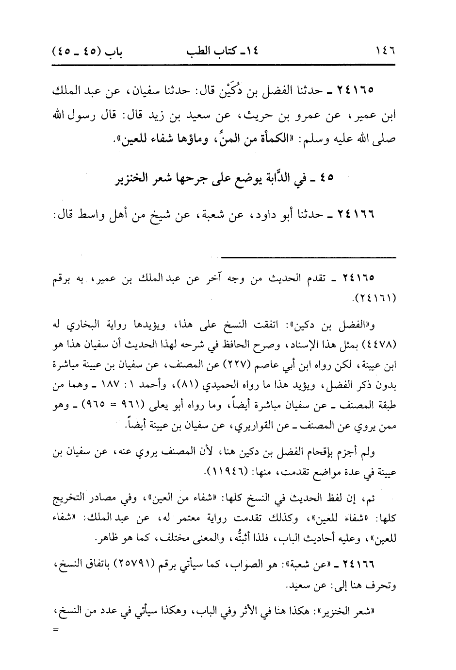 24165- حَدَّثَنَا الْفَضْلُ بْنُ دُكَيْنٍ , قَالَ : حدَّثَنَا سُفْيَانُ ، عَنْ عَبْدِ الْمَلِكِ بْنِ عُمَيْرٍ ، عَنْ عَمْرِو بْنِ حُرَيْثٍ ، عَنْ سَعِيدِ بْنِ زَيْدٍ ، قَالَ : قَالَ رَسُولُ اللهِ صَلَّى الله عَلَيْهِ وَسَلَّمَ : الْكَمْأَةُ مِنَ الْمَنِّ ، وَمَاؤُهَا شِفَاءٌ لِلْعَيْنِ.