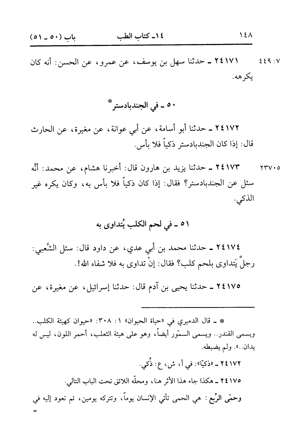 51- فِي لَحْمِ الْكَلْبِ يُتَدَاوَى بِهِ.