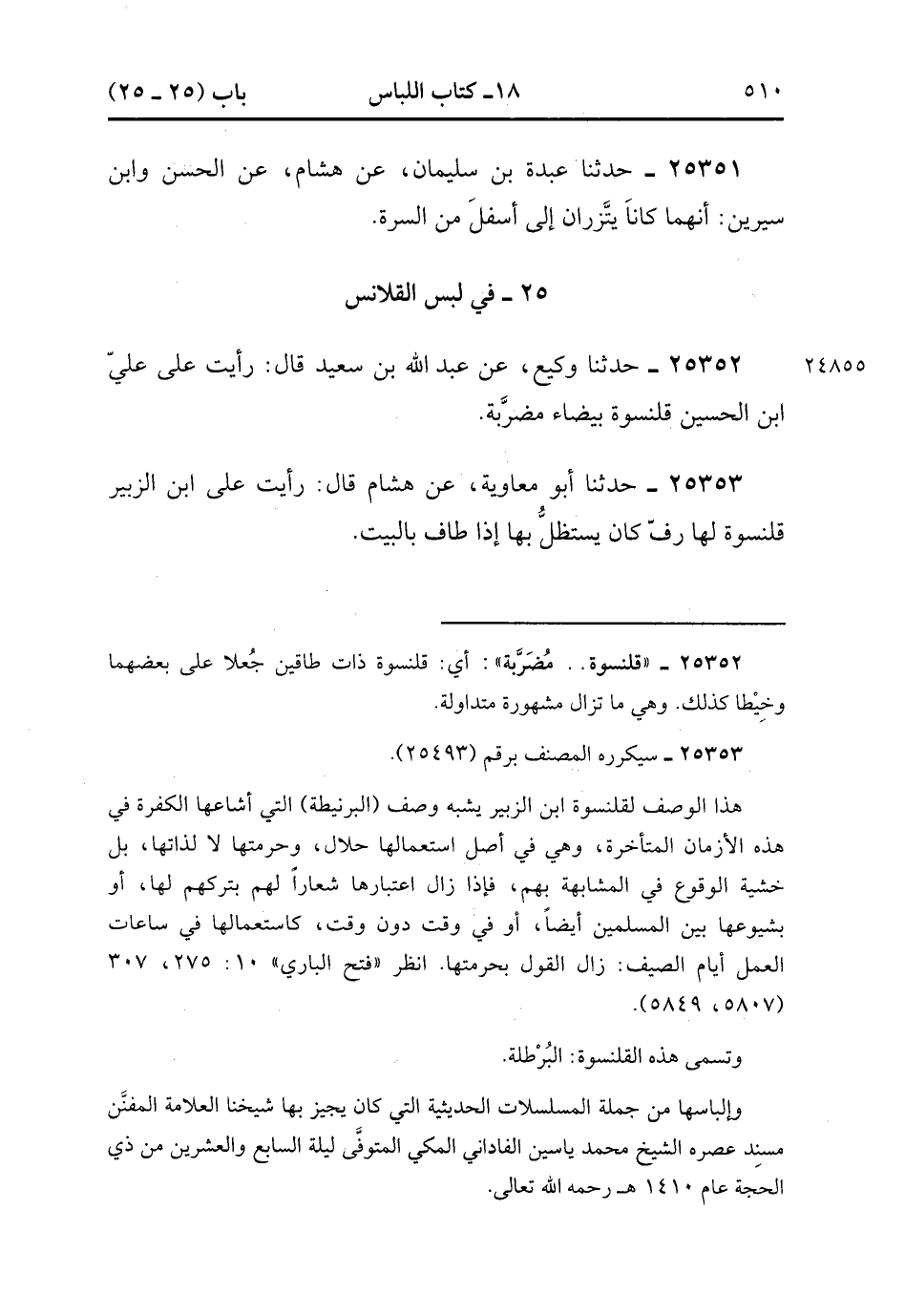 25- فِي لُبْسِ القَلاَنِسِ.
