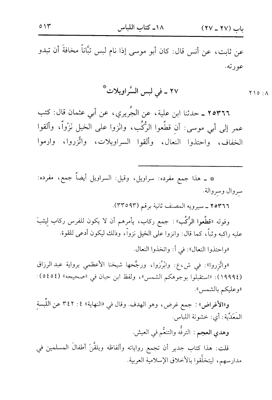 27- فِي لُبْسِ السَّرَاوِيلاَتِ.
