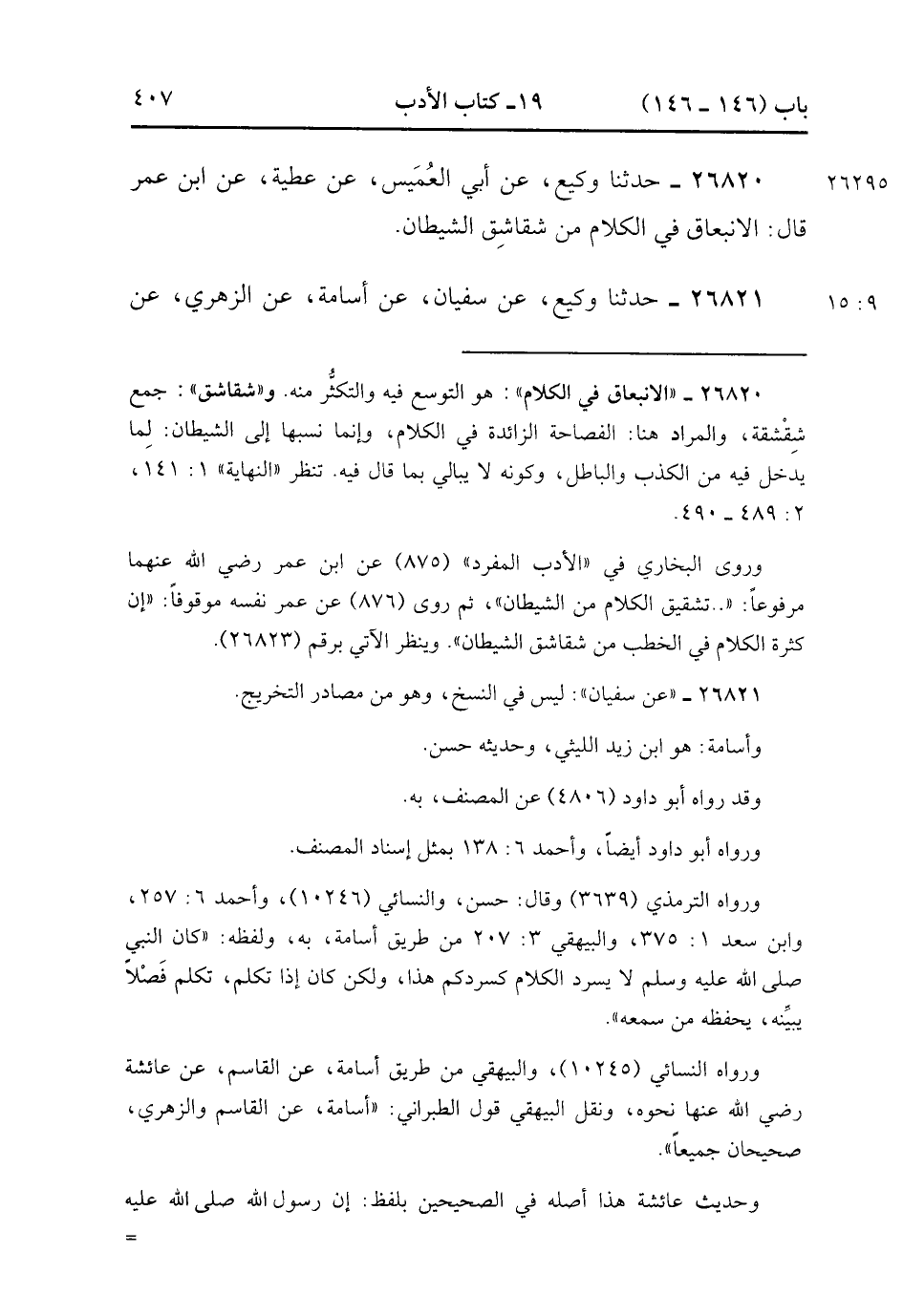 26820- حَدَّثَنَا وَكِيعٌ ، عَنْ أَبِي الْعُمَيْسِ ، عَنْ عَطِيَّةَ ، عَنِ ابْنِ عُمَرَ ، قَالَ : الإنْبِعَاق فِي الْكَلاَمُ مِنْ شَقَاشِقِ الشَّيْطَانِ. (9/14).